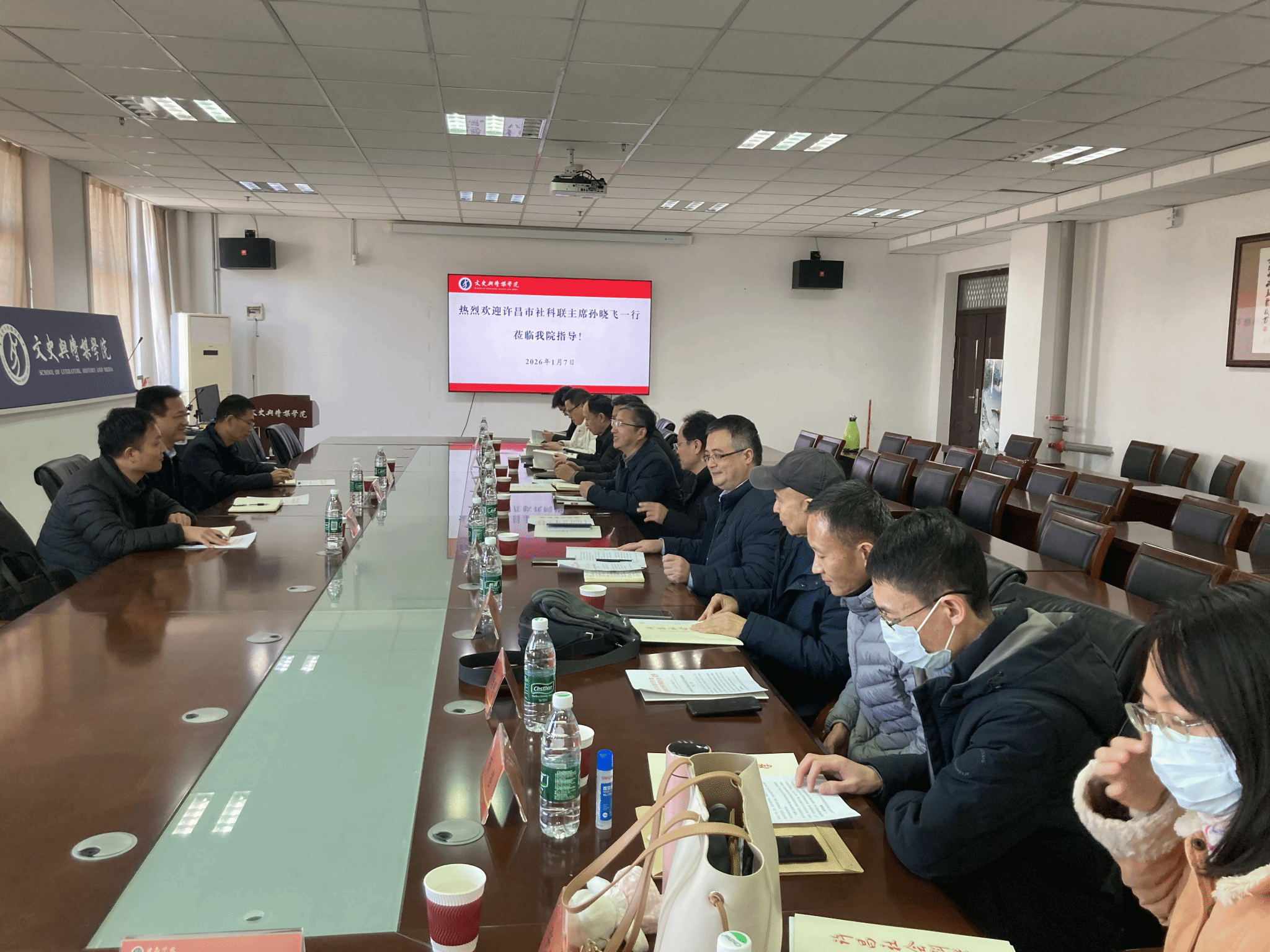 为深入挖掘和弘扬许昌颍川文化资源,推动中华优秀传统文化创造性转化、创新性发展,助力推动我市文化繁荣兴盛,1月7日,许昌市社科联主席孙晓飞、副主席康运东、办公室主任李朕燊莅临我院开展颍川文化专题调研。调研座谈会由我校科研处副处长马洪伟主持,我校维稳办主任黄高锋,我院党委书记李立夏、院长尤建设,许昌颍川文化研究中心副主任田宏波及我院教师代表参加调研。