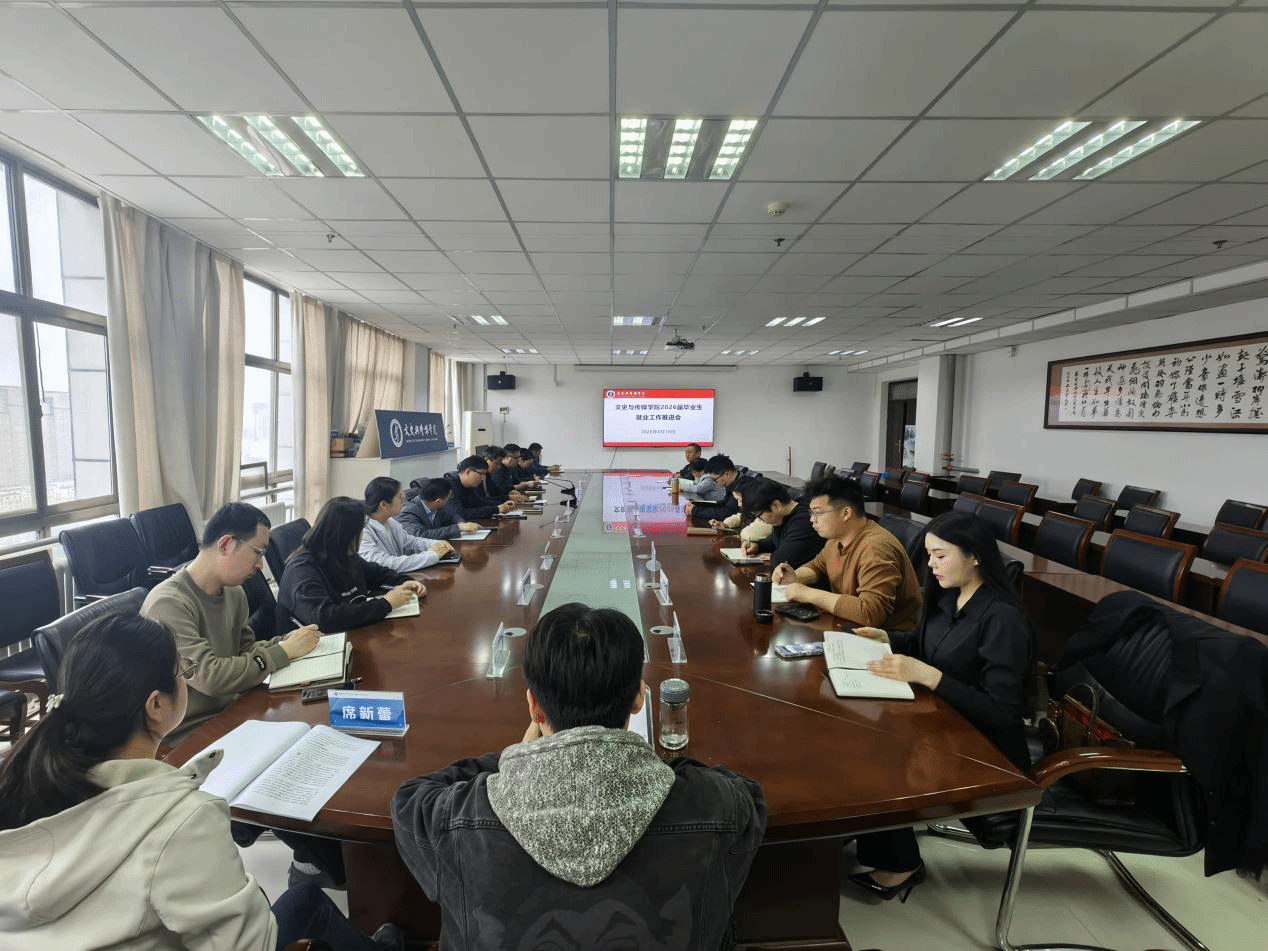 为进一步贯彻落实学校2026届毕业生就业创业工作会议精神,扎实推进学院毕业生就业工作,4月16日下午,文史与传媒学院在文综楼1723会议室召开2026届毕业生就业创业工作推进会。学院全体领导班子、科级以上党员干部、教师代表及全体辅导员参加会议。会议由院长尤建设主持。