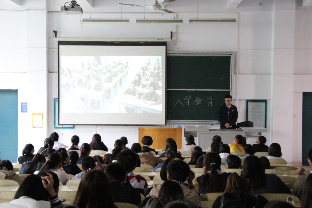 10月9日下午两点半,文学与传媒学院分别在B合四、B合五教室举行了2016届新生学前学教育活动。活动由辅导员周驰程组织召开。我院团总支副书记訾冉出席活动,并与2016届新生共同观看了中原农耕文化教育博物馆馆长汪庆华主讲的新生校情校史视频资料。