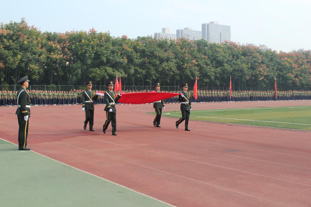 国旗班执校旗引导各学院方队入场