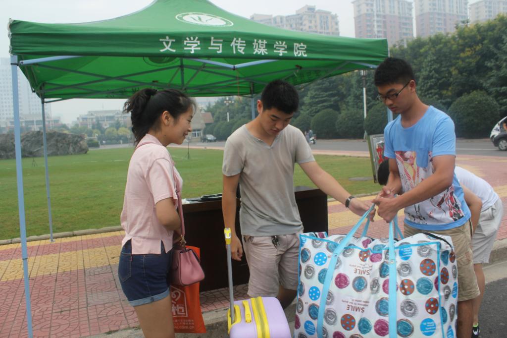 荷花映日文院汇精英,绿树摇曳学子谱宏章。9月3号上午,文学与传媒学院2016年专升本迎新工作拉开帷幕。学生会志愿者们热情引导着前来报到的学生,迎新工作井然有序的进行着。