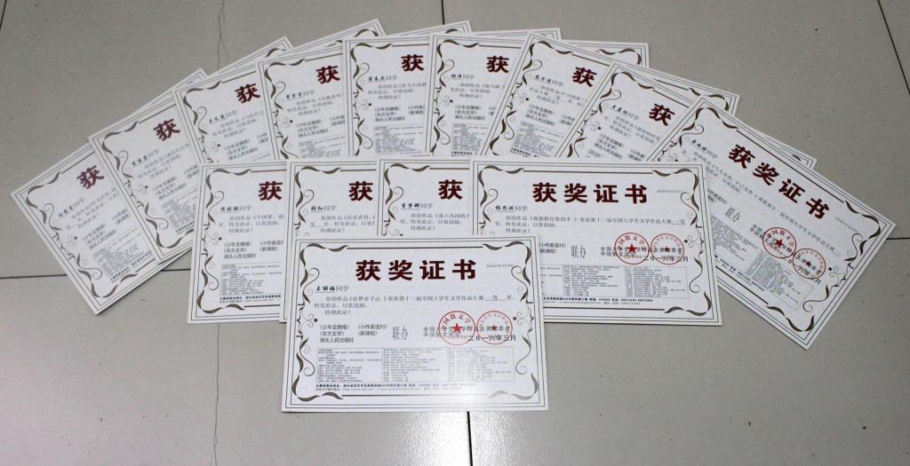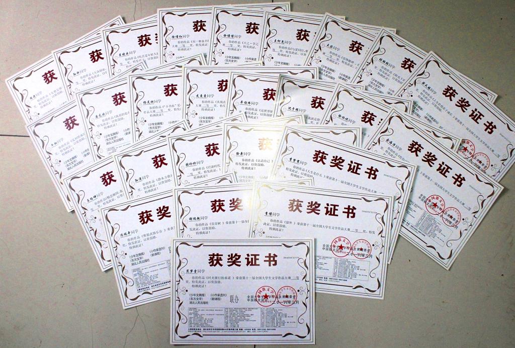 “全国大学生文学作品大赛”由湖北省文学艺术界联合会联合《小作家选刊》、《少年文摘报》、《东方文学》、《新课程》等多家知名杂志社及世界中文作家协会主办,是面向大学生的国家级文学赛事,是继“新概念作文大赛”后,国内又一家以文学机构举办(非民间组织)的针对各大高校的品牌赛事。自创办以来,每年举办一届,经过十届赛事,“大学生文学作品大赛”在众多大学生中影响广泛。每届比赛,我院各专业学生积极报名参加,屡次获得优异成绩。