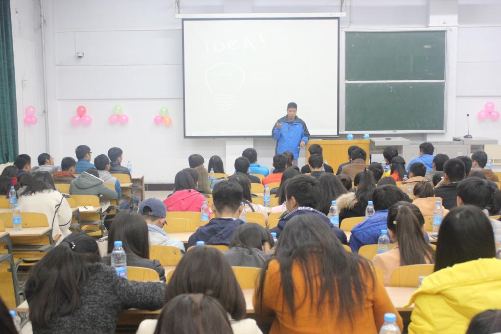 会上,李立夏老师首先对当今社会创业情况进行了分析,指出现今大学生创业已经成为一种潮流,并对现今大学生创业条件进行了分析,他认为现今大学生所拥有的创业条件十分丰富,不仅拥有丰富的知识面,还有学校,政策的支持等。随后,李老师针对大学生创业提出创业需具备的五个因素:一是要找到适合的伙伴组建创业团队;二是要结合自身优势及外围资源选择适合的创业项目;三是在国家政策的统筹下选择创业方向;四是要综合各方面因素做好创业风险评估;五是要明确人力资源的收益问题及各项细则。此外,李利夏老师鼓励大学生克服困难,积极创业,并建议大学生创业要关注局势,抓住商机,睿智思考,善于学习,走上正确且精彩的创业道路。接着,千里目航拍公司、新声影视文化传媒、豫强驾校等受邀前来的各创新创业团队负责人依次上前介绍自己的团队项目,讲述自己创业的经历,分享创业的经验心得和体会,为大家分析了创业时遇到的问题,为想创业的大学生们提供了帮助。