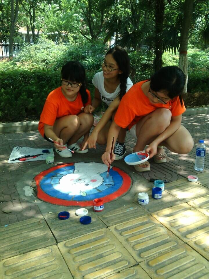 上午,活动开展时,正值高温天气,但志愿者们仍热情高涨。在送水活动中,志愿者们兵分两路,一部分志愿者将水送给路边的环卫工人,另一部分将水送给工地里的工人们,路人跟工人们对志愿者们的爱心举动赞赏不已。送完水的志愿者们脸上都是汗水,可是并没有停下爱心的脚步,他们拿出事先准备好的抹布跟颜料等工具,又投入到志愿服务当中。志愿者们在井盖上画出自己对许昌的印象,过路的行人不时的停下脚步观摩,也有些市民停下来拍照留恋,表示对志愿者们行动的赞同。