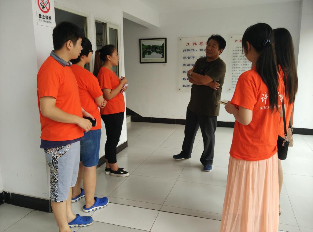 越调是河南省的汉族戏曲剧种之一。2006年5月20日,越调经国务院批准列入第一批国家级非物质文化遗产名录。队员们就非物质文化遗产越调的历史起源、发展状况和国家保护情况三个方面展开了采访。邓志刚老师对越调保护情况进行重点介绍:截止目前,河南省只剩下河南越调剧团和许昌越调剧团两个专业演出团体;资金缺乏、新剧目编剧困难、演员薪酬待遇低等问题导致越调剧团丧失了大量优秀人才,尽管如此,作为戏曲之乡的许昌更应肩负使命,将越调这一珍贵的非物质文化遗产继续传承下去。队员们听了邓老师的讲述后,对老一辈艺术家钦佩不已,他们坚守在传承戏曲文化发展的道路上,倾尽一生只为传承我国优秀传统文化。同时,队员们也对越调的保护等问题展开讨论。