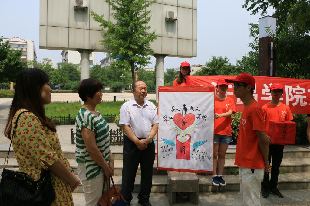 7月3日,我院编外雷锋连暑期社会实践队本着“人人一点爱,爱满老人心”的活动主题,在许昌市春秋广场开展了一场爱心募捐活动,意在呼吁人们多多关心老人。