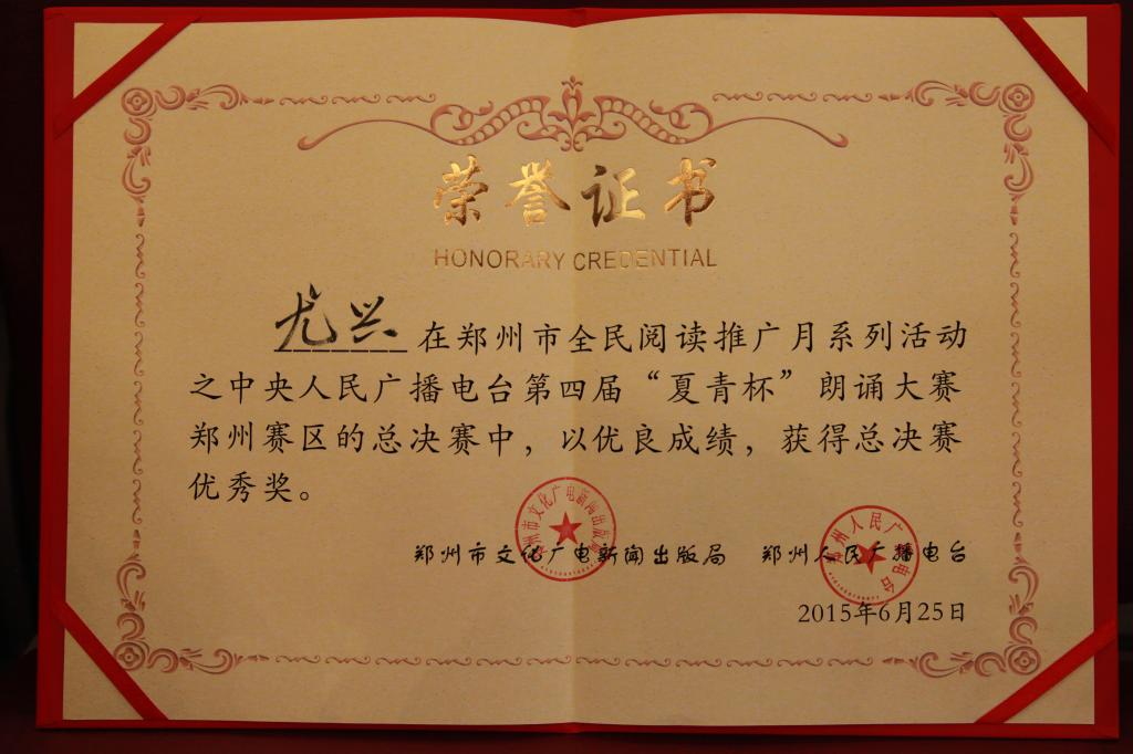 在比赛前后,我院领导老师高度重视,积极组织同学参加,并指定专业老师进行指导。中央人民广播电台第四届“夏青杯”全国朗诵大赛郑州赛区于2015年4月1日启动,历时3个月,吸引了各地近千名朗诵爱好者的参与。经过层层选拔,150名选手进入复赛,30名选手晋级决赛。我院学生尤兴、牛善耕凭借扎实的基本功,在近千名朗诵爱好者中脱颖而出,凭借诗朗诵《燃烧吧,青春的火光》最终荣获优秀奖。