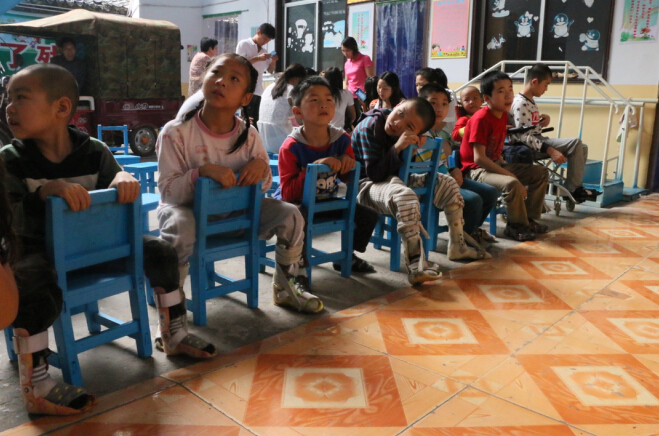 志愿者们到达时,小朋友们以大喊、摇头、鼓掌等方式表达高兴之情,他们脸上都洋溢着笑容,异常高兴。随后,志愿者们为小朋友带来了形式多样的节目,包括唱歌、跳舞、武术表演等,并与他们一起做游戏,小朋友们的欢声笑语和掌声充满了教室。节目尾声,小朋友们齐声对着老师说:“老师你辛苦了,谢谢你”。志愿者们也抒发了对老师和孩子们的热爱之情。期间,孩子们的老师一直在旁边关注着他们,令人们看到了老师对学生浓浓的爱。