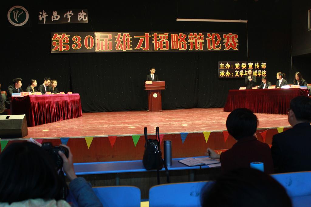 3月24日下午,由许昌学院党委宣传部主办、文学与传媒学院承办的第30届“雄才韬略”辩论赛复赛在大学生活动中心举行。我院与食品工程学院就“网络用语丰富我们的语言还是污染我们的语言”为题展开了激烈的辩驳。