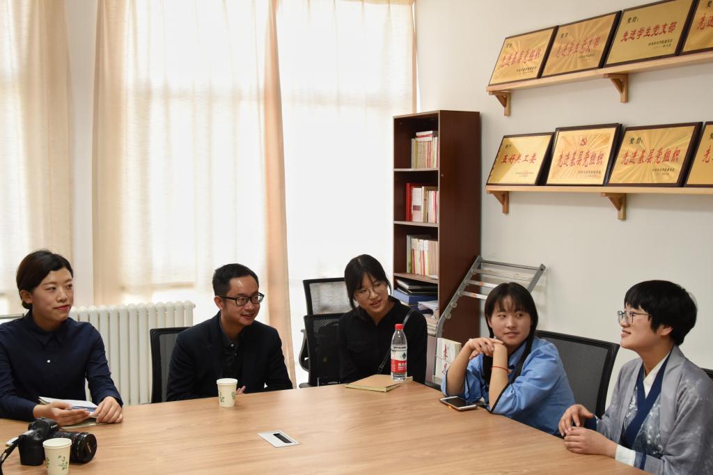 4月22日下午,许昌学院首届诗词大会圆满落幕。赛后我院诚挚邀请“第二届中国诗词大会”荣获亚军的彭敏老师,与十位参赛选手在文科综合楼1509会议室进行了一场经验交流会。