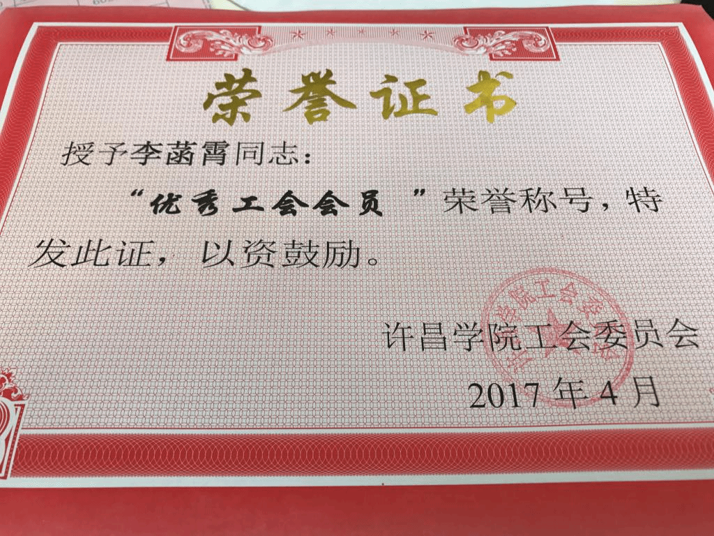 4月27日下午,许昌学院庆“五一”表彰大会在办公楼第三会议室召开。文学与传媒学院工会工作喜获佳绩。文传院分工会被评为许昌学院“工会工作先进单位”。马丽娜老师获得“巾帼标兵”“优秀工会工作者”两项荣誉称号;梁蕾老师和苗阳老师获得“巾帼标兵”称号;杨浩红、李菡霄、周驰程三位老师被评为优秀工会会员。