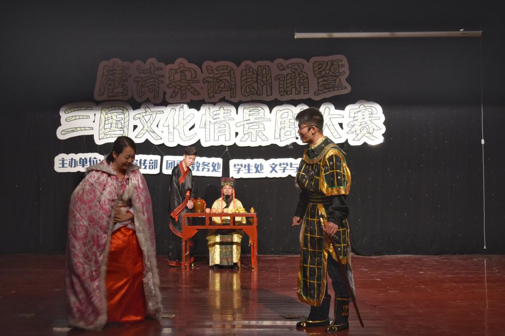 本次唐诗宋词朗诵暨三国文化情景剧大赛的成功举办,提高了学生对传统诗词的喜爱,加深了同学们对诗词内涵的理解,通过情景剧再现三国时期的风云变幻,为同学们提供一个展示自我的舞台,展现了我院学生积极向上的精神风貌,同时营造了活跃的校园文化氛围。(摄影:刘布凡)