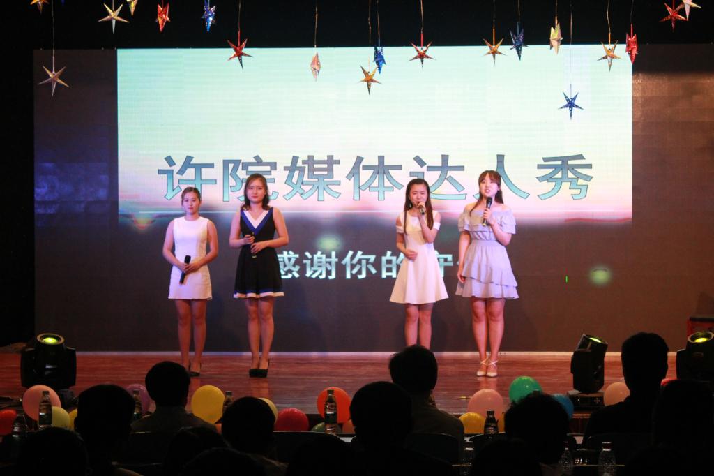 一段体现青春激情的舞蹈拉开了本次晚会的序幕。一首《青春之歌·启程》承载着青春的梦想与希望,寄望全体同学勇敢向前。朗诵《家》带我们回忆过往,领略家训的责任和感动。汉服表演《如梦霓裳》优雅地展现了中华礼仪之美。《许院媒体达人秀》《配音秀》《主持大咖秀》等,为观众带来无尽的乐趣和欢笑,不仅体现了播音主持专业特色,更传达了文传的魅力。随着旋律响起,《大学再见》追忆着师生之间、同学之间点滴,感动人心,引起大家共鸣。晚会接近尾声,14级播音与主持艺术专业师生同台温馨合颂《写给未来的你》寄望未来,不忘初心,砥砺前进。
