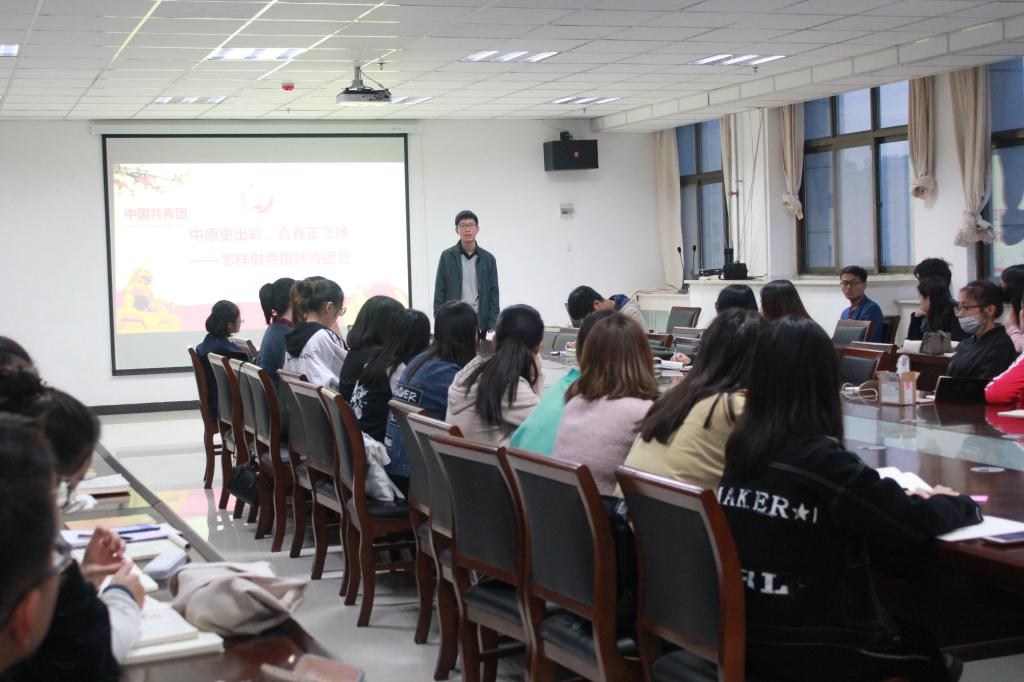为提高团员思想理论水平和政治素质,加强理论知识教育。10月24日下午五点半,文学与传媒学院在文科综合楼1417会议室开展以“怎样做一名合格的共青团员”为主题的新一期团课培训。团课由我院团总支书记訾冉主持,我院部分优秀团员参与了本次活动。