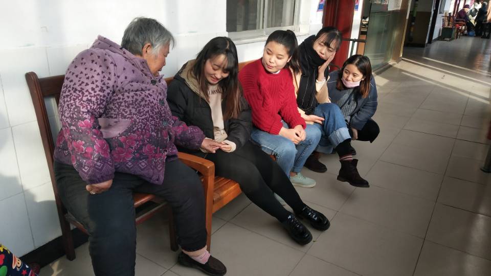 下午两点四十,同学们乘公交车到达敬老院,并在工作人员的带领下与老人见面。由于天气寒冷,老人们不便外出,同学们就分组结队进入老人们的房间,陪他们聊天、下象棋、打麻将、房间里传出阵阵笑声,气氛十分融洽。同学们认真倾听每位老人的故事,帮助老人们换水,打扫卫生。志愿活动结束后,同学们依依不舍地与老人们告别,并约定下次再见。