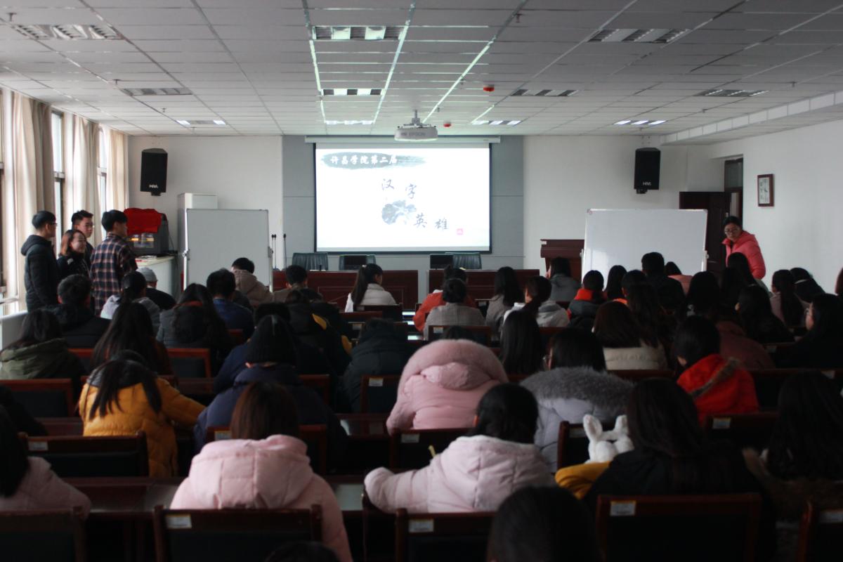 为丰富校园文化生活,提高广大师生对汉学文化的关注程度,继承发扬中华优秀传统文化。12月15日下午三点半,许昌学院第二届汉学文化之汉字英雄大赛复赛在文科综合楼1917会议室拉开帷幕。我校热爱汉字文化的同学共同观看了此次比赛。