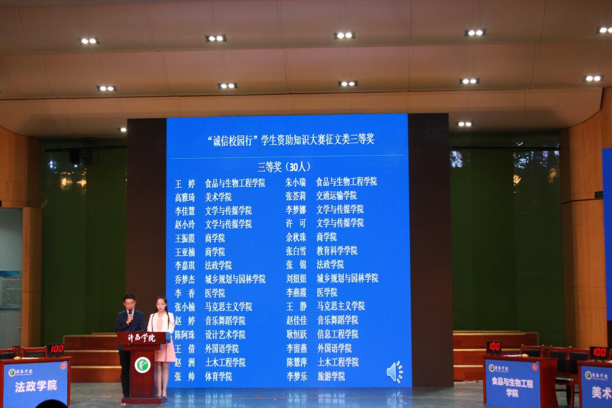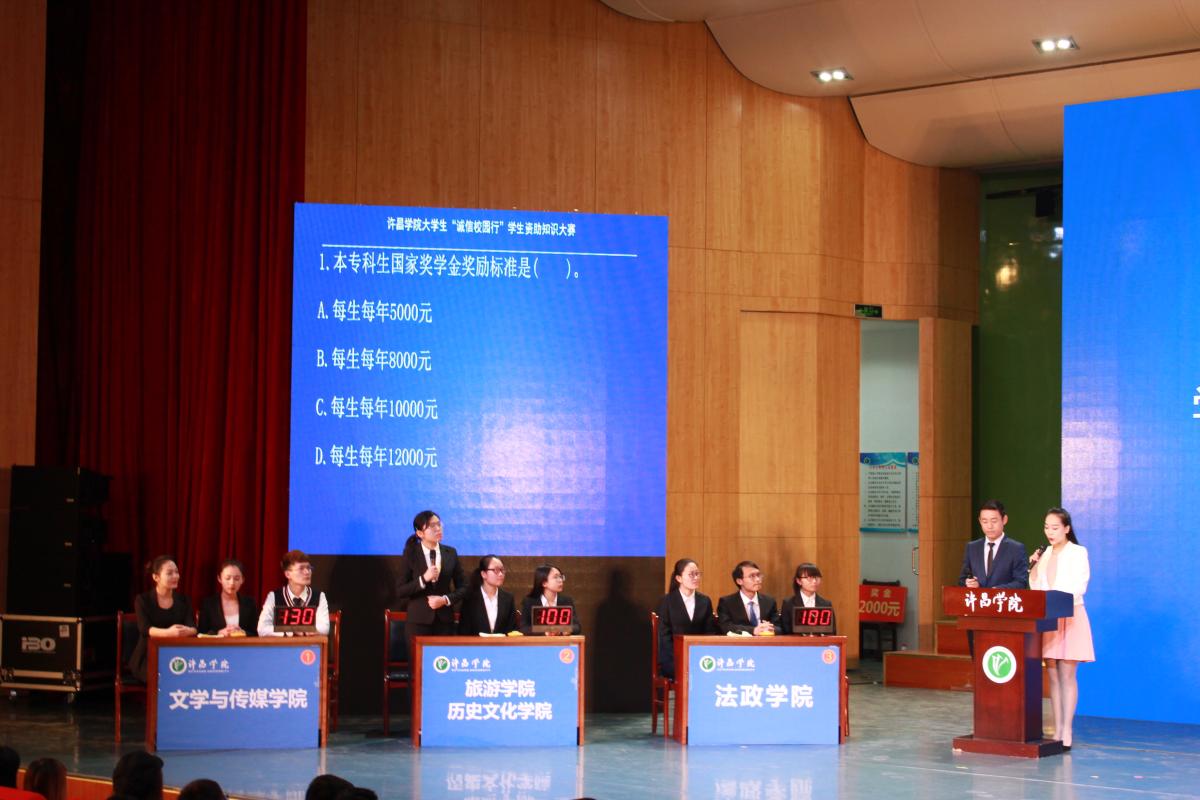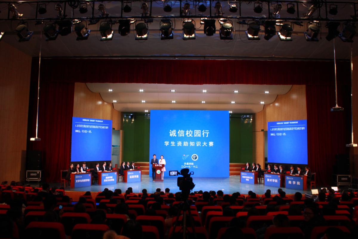 为深入学习宣传贯彻党的十九大精神,践行社会主义核心价值观,弘扬诚信自强精神。12月8日下午,我校在音乐厅举办了“诚信校园行”学生资助大赛决赛。许昌学院学生资助管理中心奖助科副科长田建伟、宣传部部长熊德兰、校团委杨乐乐莅临现场担任评委,来自我校各学院共六支学生代表队参加了本次比赛。