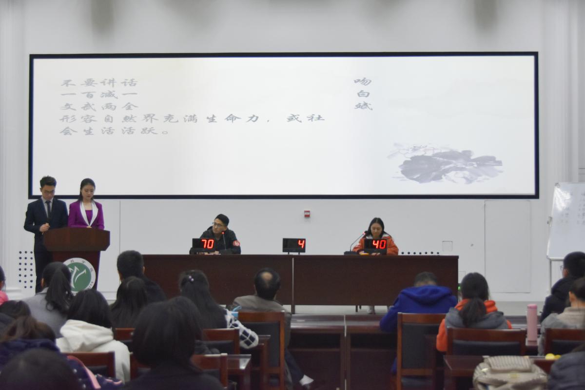 第一轮比拼中,选手们通过根据拼音写汉字进行两两对决,选手们镇定自若、沉着答题。第二轮火眼金睛中,选手们根据PPT上给出的题,选出成语或词语中的错别字。在第三轮的勇攀高峰中,选手们反应机敏,思维活跃,现场气氛一度十分紧张,激烈的角逐过后,共有两名选手终于进入最后一轮。谁与争锋环节中,双方选手你来我往,展现出自身渊博的文化素养。最终,来自文学与传媒学院的赵倩同学夺得本届汉字英雄大赛决赛的桂冠。