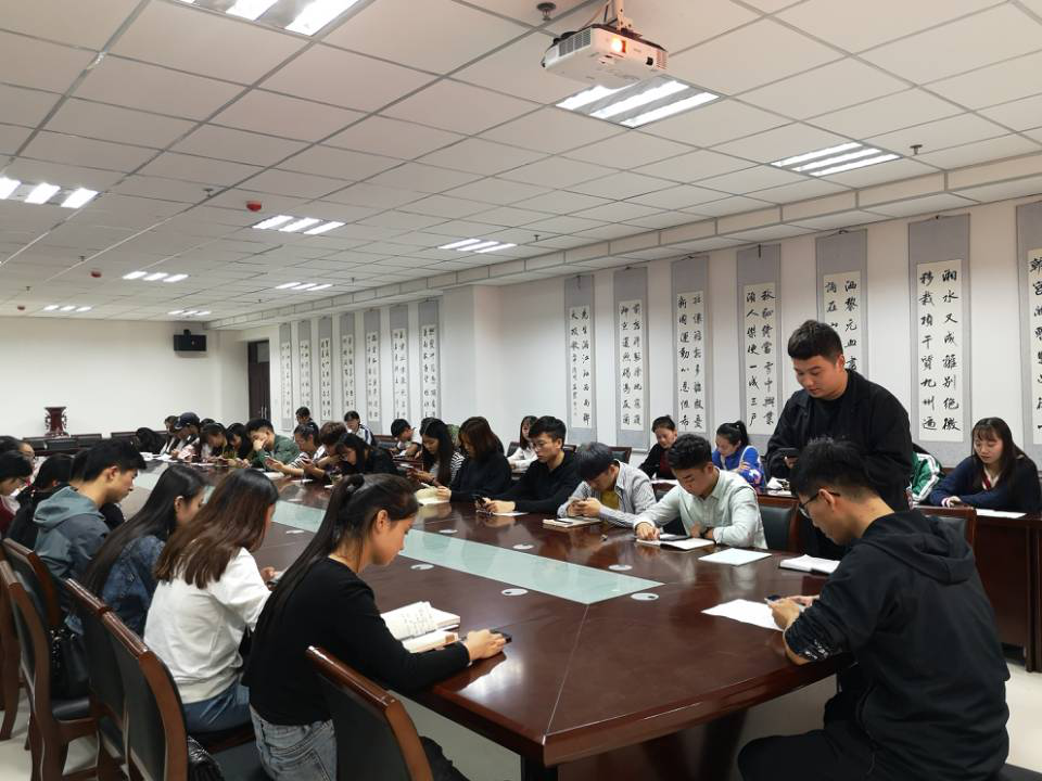 10月8日晚,文学与传媒学院在文综楼1417会议室开展学习《学生会、研究生会干部自律公约》暨学生干部培训会。会议由团总支副书记訾冉主持,全体学生会干部以及18级部分班干部代表参加了此次会议。