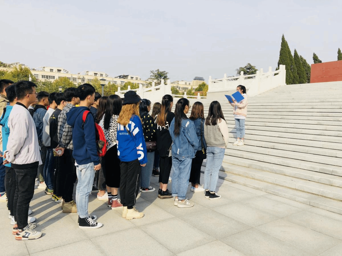 10月19日下午,文学与传媒学院18级播音一班全体同学赶赴许昌烈士陵园开展团日活动。