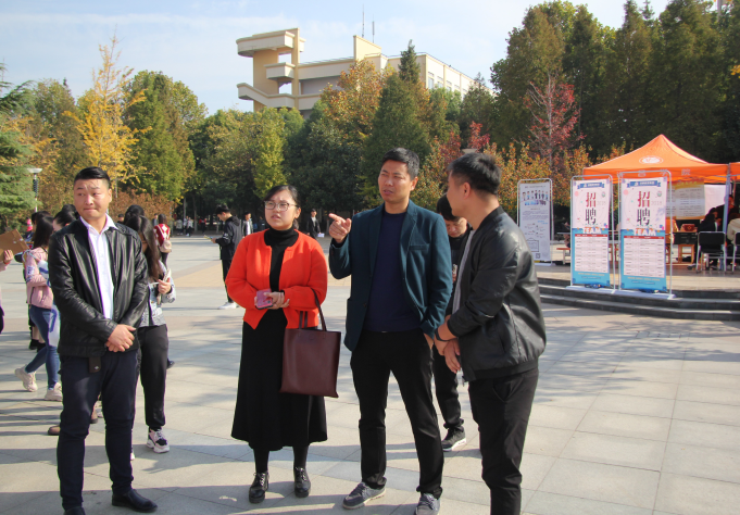 11月3日上午九时,2018年金秋招聘月校园专场招聘会在我校弘毅广场隆重举行。我院党总支副书记李立夏、就业专干张姗姗、19届毕业生辅导员韩慧鸽、张科、万光明等老师莅临招聘现场。我院15级在校生和往届毕业生参加此次招聘会。