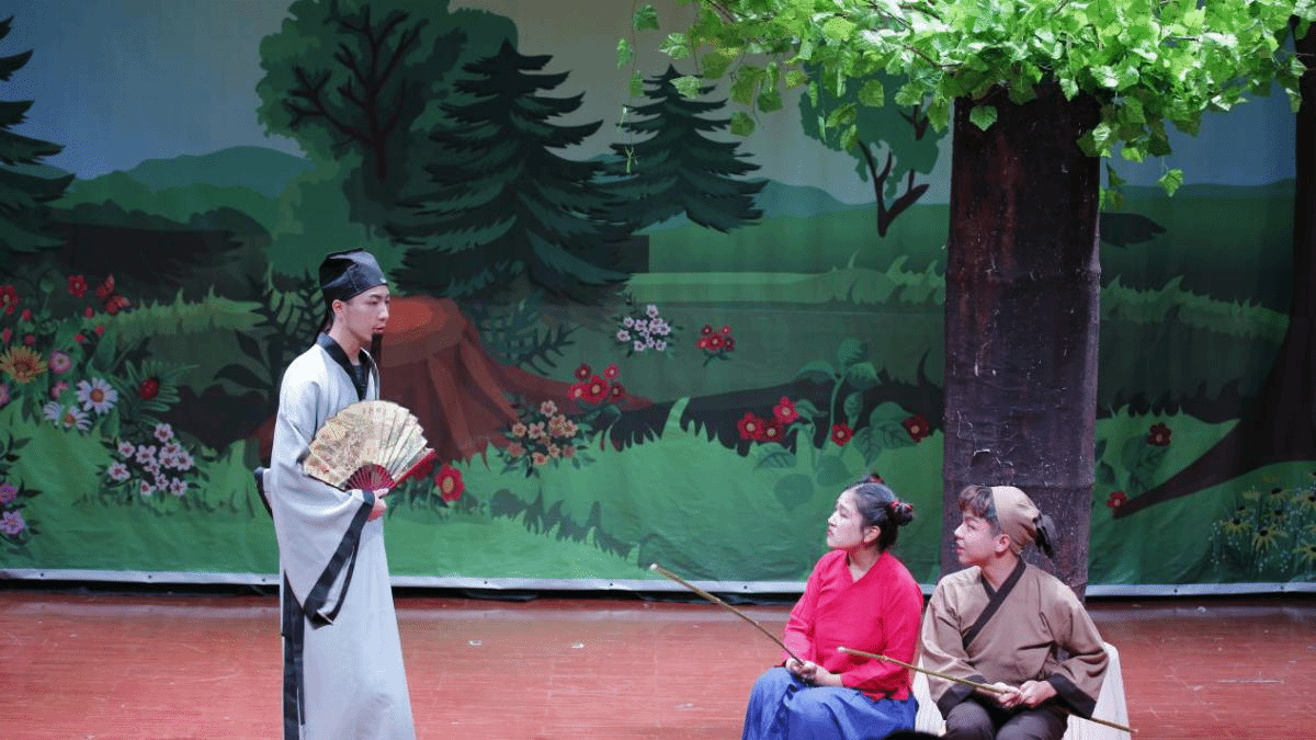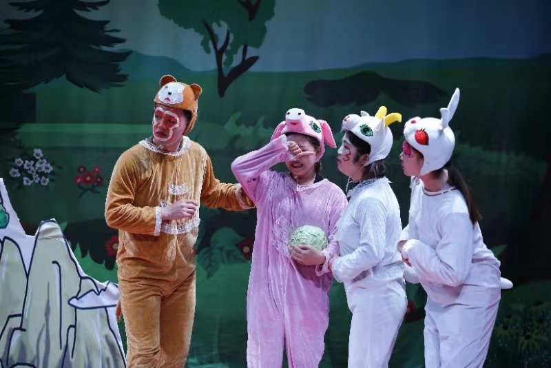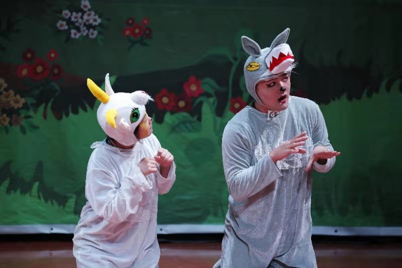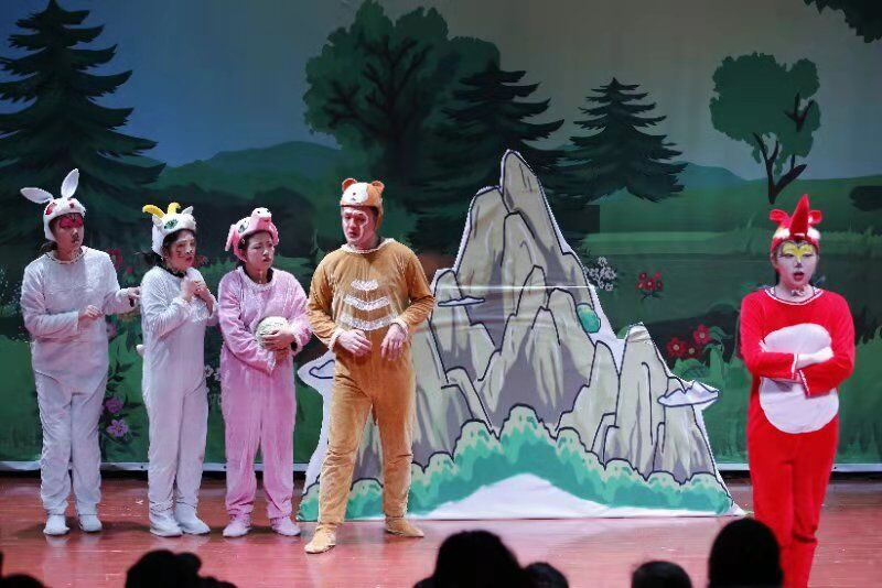 本次演出在诗词改编而成的《小儿垂钓》一剧中拉开帷幕,共包含了《狼来了》、《守株待兔》、《狐假虎威》、《陶罐与铁罐》等五个各具特色的剧目。其中,《小儿垂钓》作为唯一一部改编自古诗的剧目,以丰富的想象消弭了简练诗文带给孩子们的枯燥感和晦涩感,使其从表演伊始便能抓住孩子们的眼球,鼓励班内学生,以及观看表演的孩子们发挥自己的想象力。《狼来了》、《守株待兔》则在原有寓言故事的基础上,增添了许多搞笑元素与现代元素,使这些故事与孩子们的生活联系起来,更容易为孩子们所感知。以大学生特有的创造力,在为观众带来愉悦观感的同时,寓教于乐,用孩子们喜闻乐见的方式,传递了本次“为爱而行”课本剧的教育内涵。而同样由寓言故事改编而来的《狐假虎威》、《陶罐与铁罐》,则加入了更多歌舞、专业方面的内容,既不忘编剧表演教学实验班为教给学生们更多专业学习机会的创立初心,也向孩子们展现了我院的专业性,有助于提高学生对于戏剧艺术、以及各项语言协作能力,帮助其通过更有趣味性、更能为他们所接受的方式,树立正确价值观与道德观。