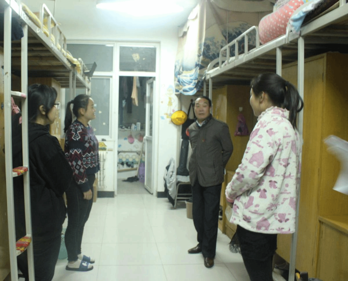 走访过程中,老师们与学生进行亲切交谈,详细询问同学们在校生活的情况,并仔细查看宿舍的各种设施是否完善。同时,老师们通过走访还检查了同学们的住宿卫生及宿舍安全状况,强调学校禁止使用违章电器,同学们要时刻注意用电安全问题。领导老师们还对寝室的供暖情况进行详细调查,提醒学生注重宿舍通风、人身安全等问题,切实保障自己的安全和健康。最后,院系领导对同学们寄予希望,希望同学们把大学作为一个人生新起点,热爱自己选择的专业,不断深入、认真学习钻研,为未来发展奠定坚实基础。