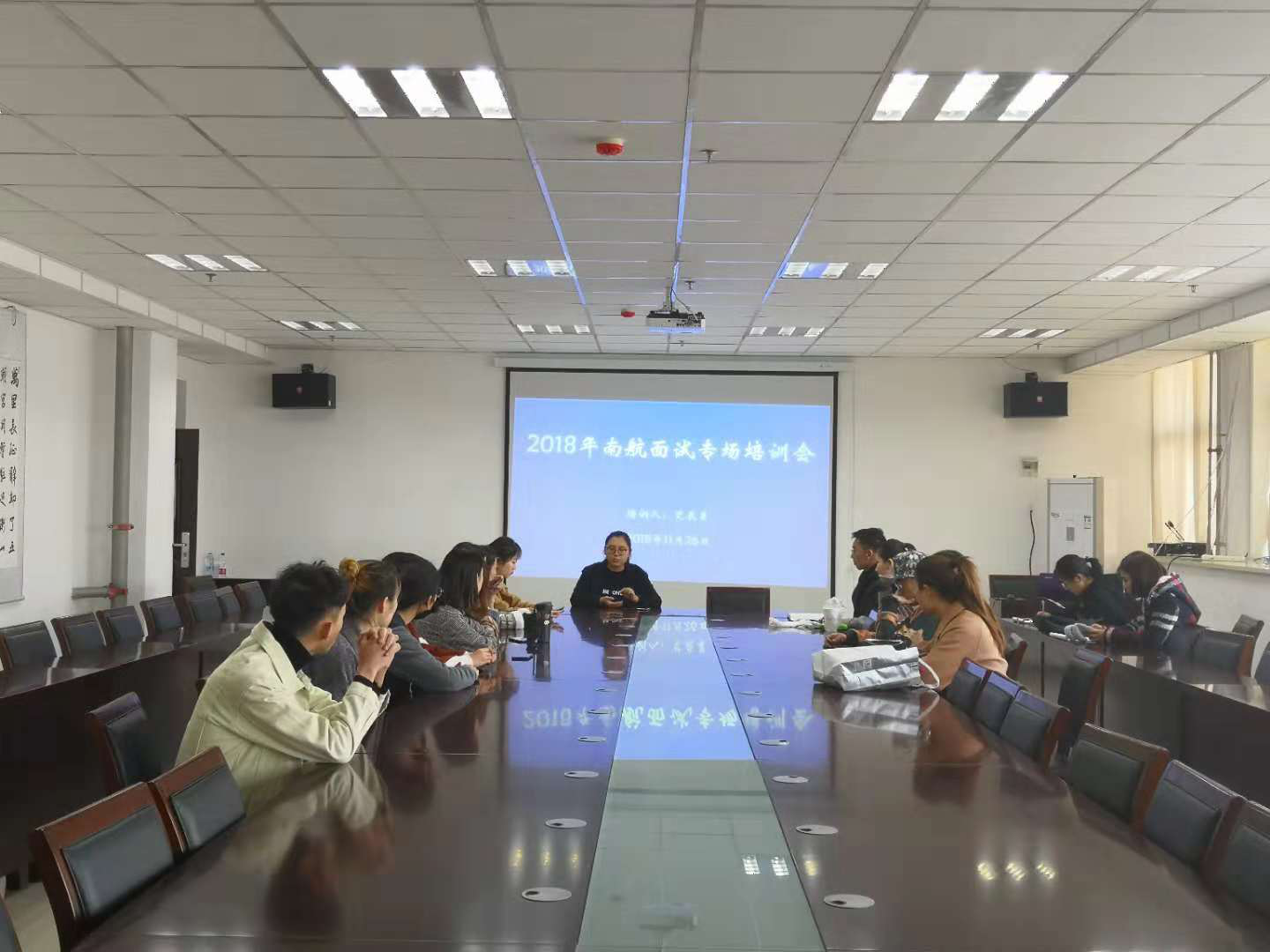 11月26日上午,我院在文科综合楼1417会议室举办2018年南航面试培训会,此次培训由张姗姗老师主持、艾辰星老师主讲,我院部分学生参加了此次培训。