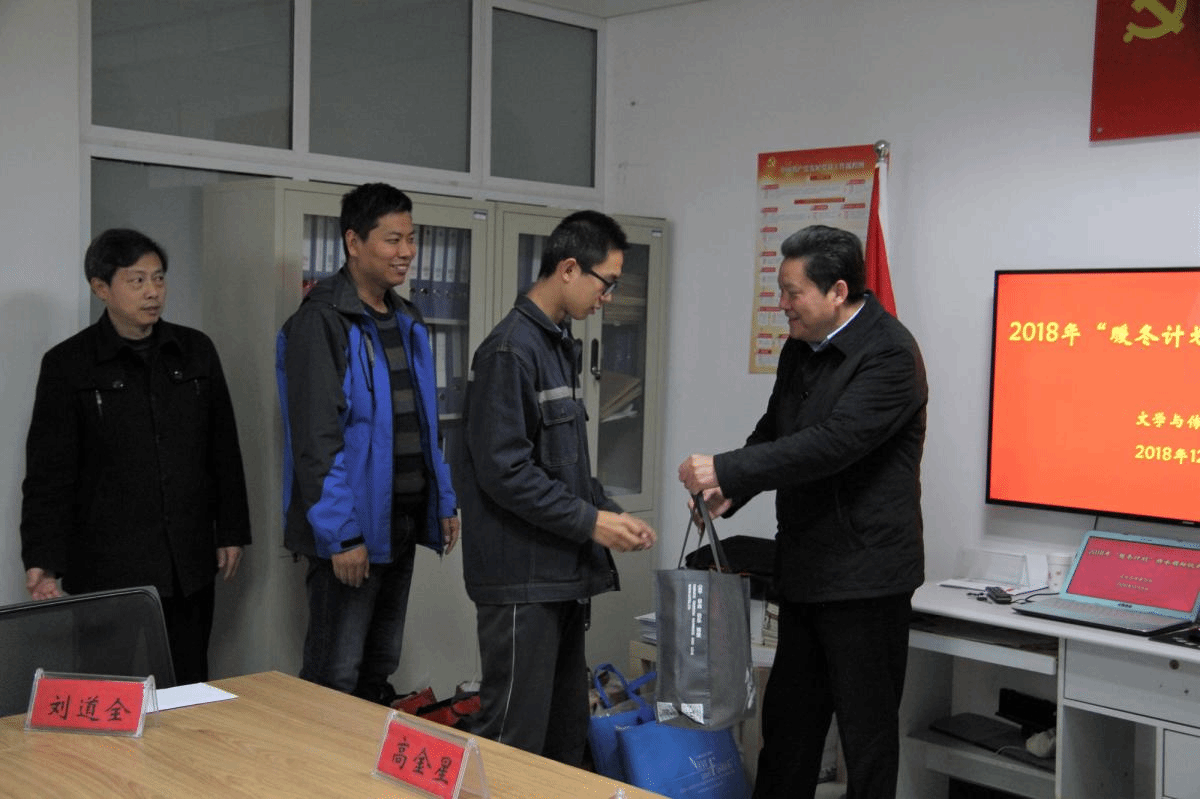 12月6日下午四点,我院在文综楼1509会议室举行2018年“暖冬计划”棉衣捐助仪式。校工会主席高金星出席捐助仪式,文学与传媒学院党总支书记赵颖、院长刘道全、副院长梁蕾和十名受助学生参加捐助仪式。仪式由我院党总支副书记李立夏主持。
