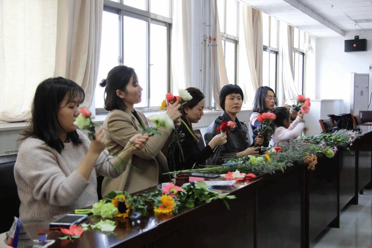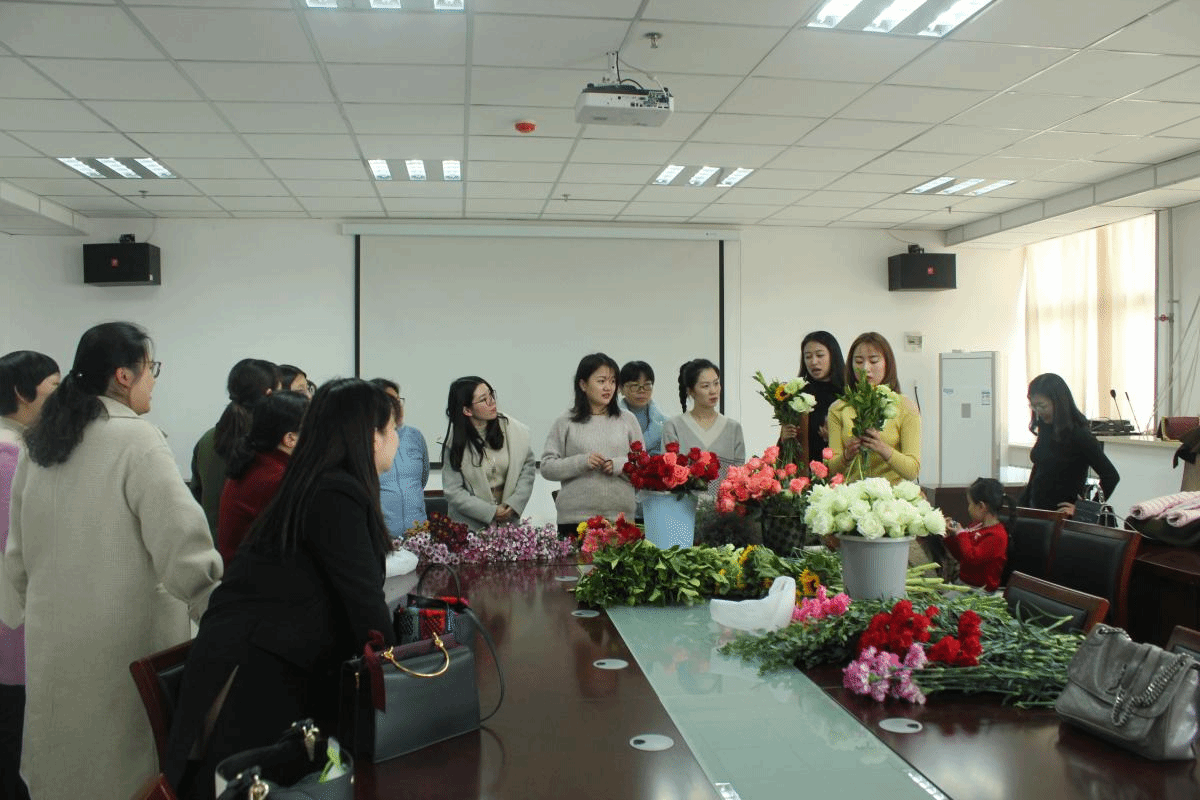 3月8日下午三点,文学与传媒学院在文综楼1417会议室开展三八妇女节花艺沙龙活动,本次活动由花艺老师主讲,文学与传媒学院全体女教职工参与了此次活动。