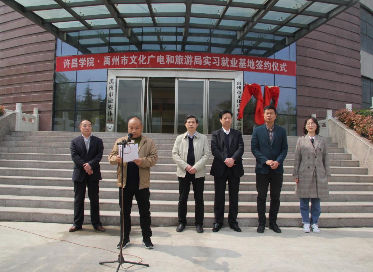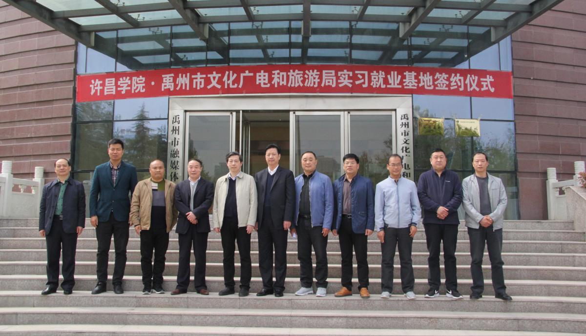 4月11日上午,文学与传媒学院与禹州市文化广电和旅游局举行实习就业基地签约及揭牌仪式。文学与传媒学院院长刘道全、党总支书记赵颖、党总支副书记李立夏、相关指导老师,禹州市文化广电和旅游局白剑华局长、宋永伟副局长参加仪式。
