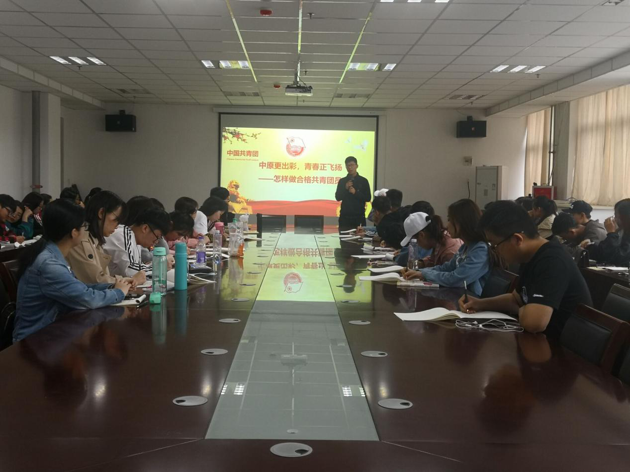 4月19日下午,我院在文科综合楼1417会议室组织开展以“中原更出彩,青春正飞扬”为主题的分党校培训课程。本次培训由我院团总支副书记訾冉主讲,我院入党积极分子参加了此次培训。