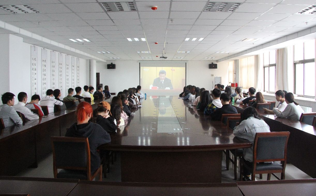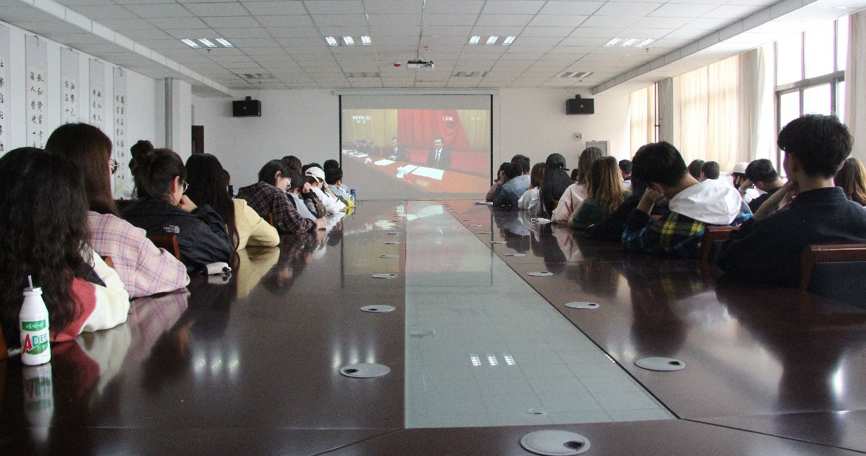 4月30日上午,我院组织院系师生在文综楼1417会议室观看纪念五四运动100周年大会直播,聆听中共中央总书记主席习近平发表的重要讲话。