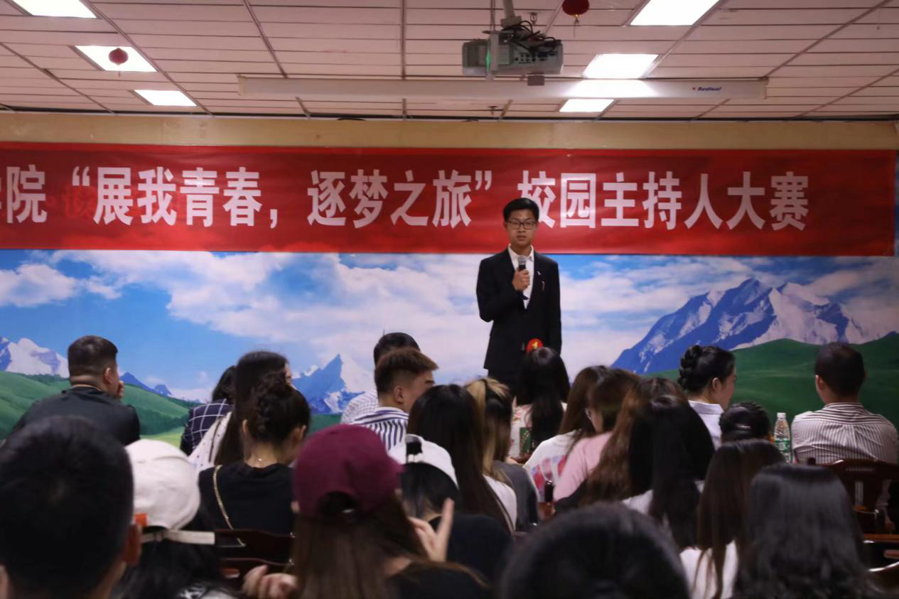 5月19日晚上7点,我院在图书馆八楼活动室举行“展我青春,逐梦之旅”校园主持人大赛决赛,我院团总支副书记訾冉、播音与主持艺术专业教师万光明、穆迪和李菡霄老师以及辅导员张姗姗老师担任评委。本次比赛由我院团总支主办,播音与主持协会承办,晋级决赛的10名同学参加了此次比赛。
