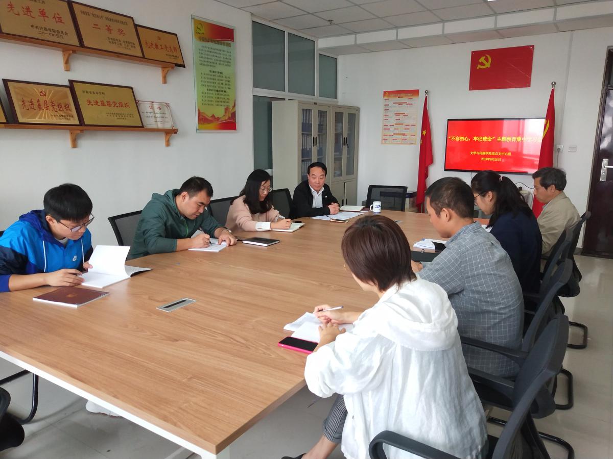 9月20日上午,我院党总支中心组在1509党员活动室召开“不忘初心、牢记使命”主题教育集中学习会。会议由党总支书记赵颖主持,全体中心组成员参加,院长刘道全列席。