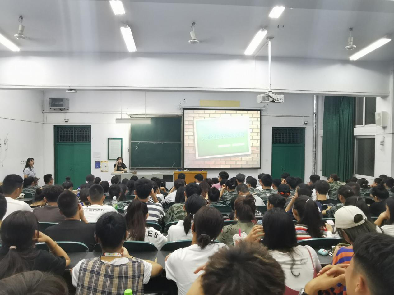 9月8日晚上七点,我院在教学楼A合十三、A合十四教室组织开展新生入学教育活动,本次活动由我院19级辅导员杨咏雪和鲍利涵老师主持,我院2019届全体新生参加了此次入学教育活动。