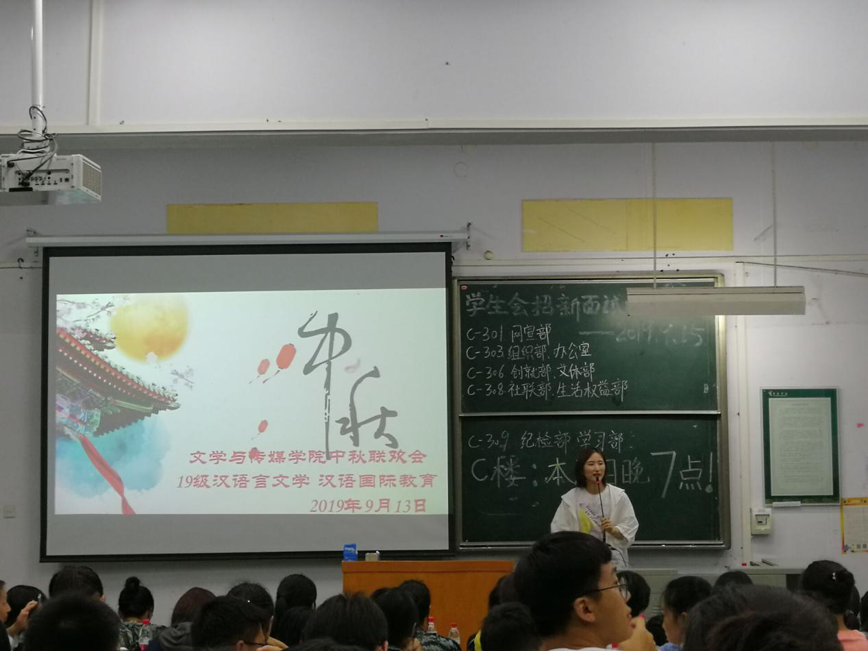 9月13日,适逢中秋节,我院分别在A合十三、A合十四教室开展新生中秋茶话会。本次活动由我院19级辅导员鲍利涵和杨咏雪主持。