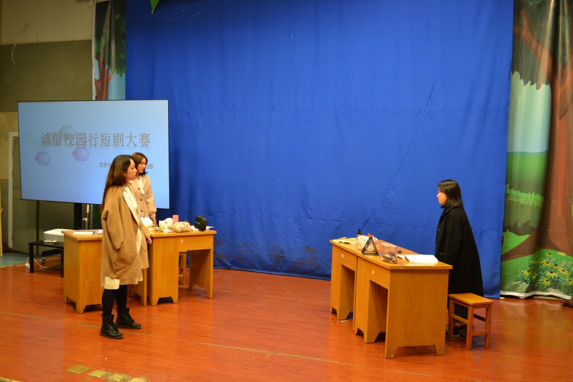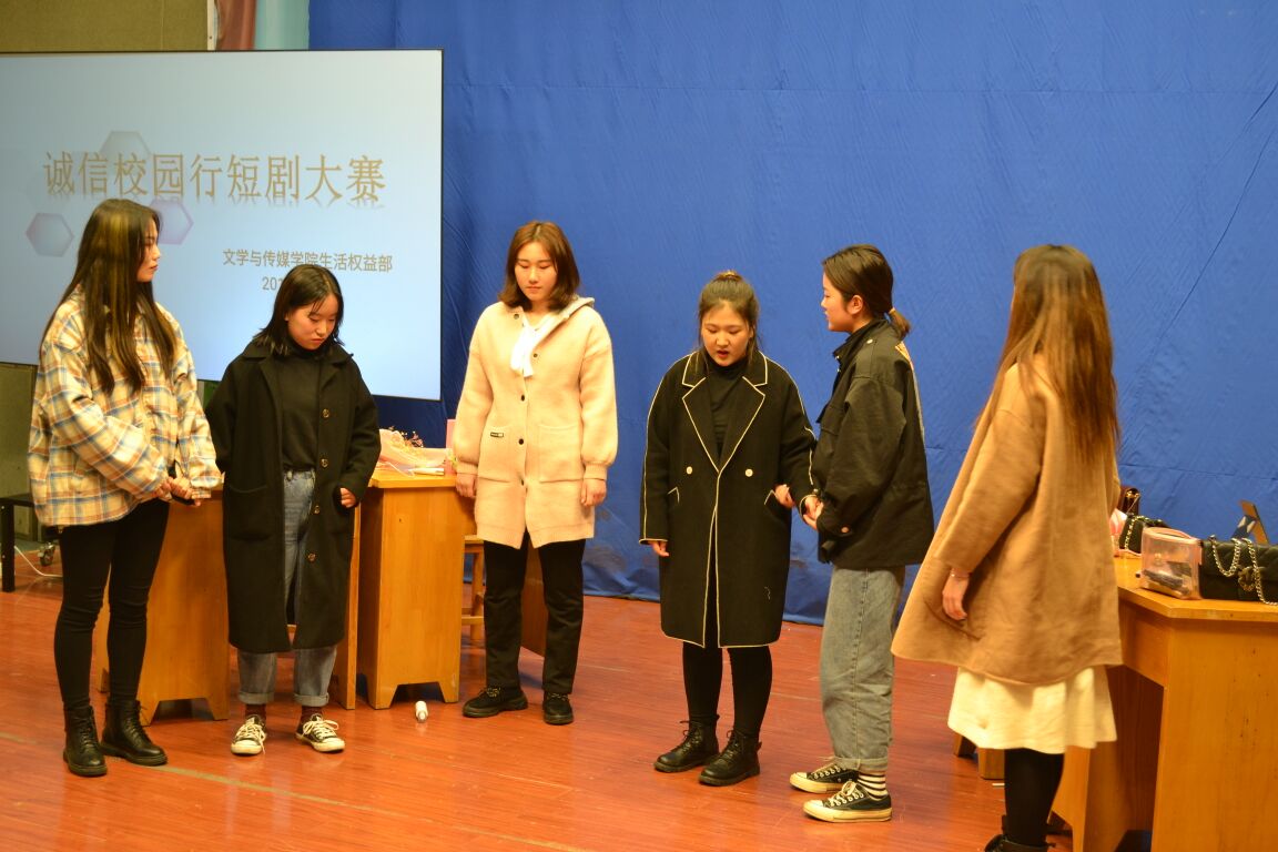 为了培养学生诚实守信、知恩感恩、自立自强的良好品质,11月17日晚,我院“诚信校园行”短剧大赛初赛在B合七举行,来自各个班级的10个短剧参与本次比赛,张晶晶老师和张姗姗老师受邀担任比赛评委。