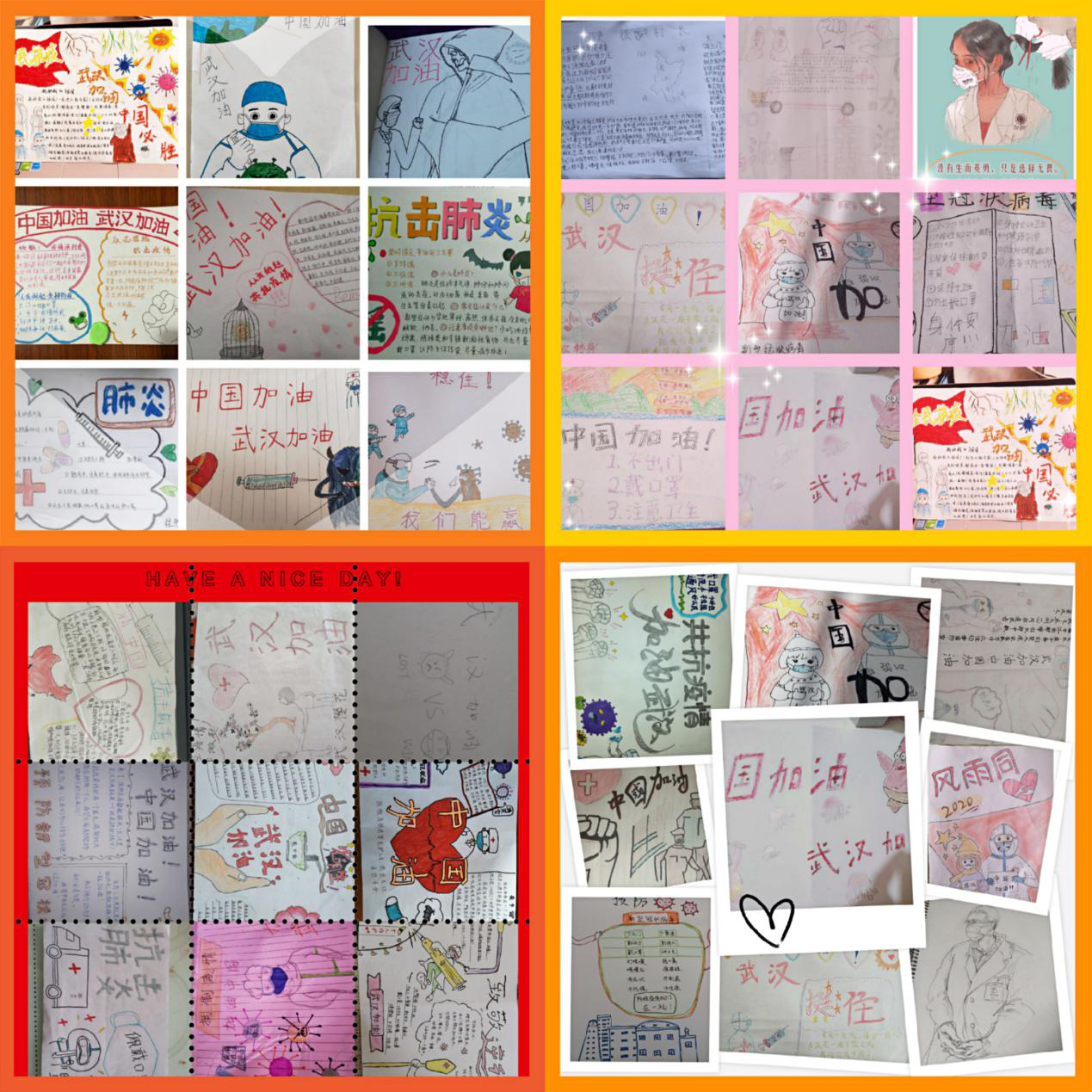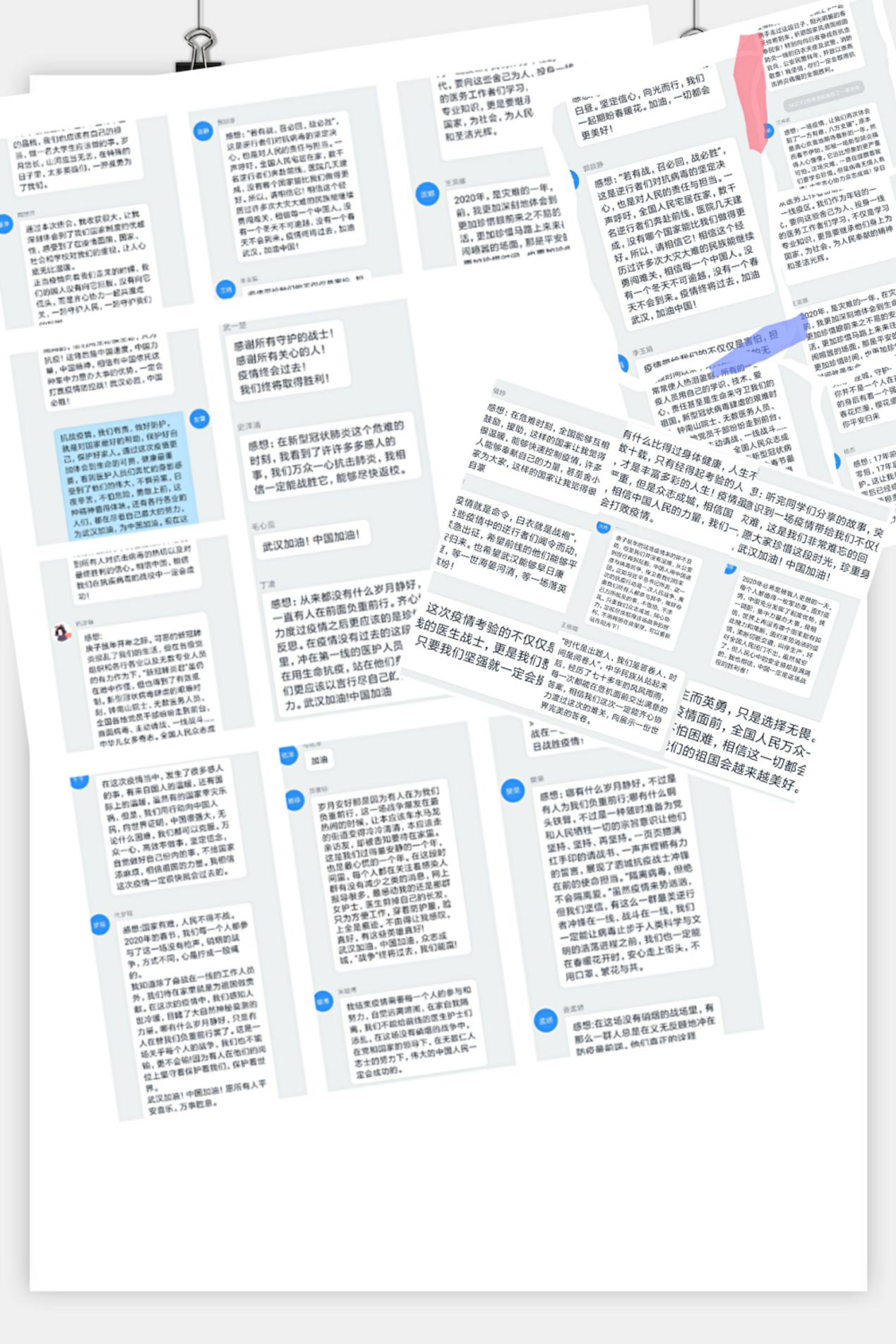 18级汉文专业的张晓雪同学说:第一次通过线上形式开的班会,方式新颖,但更重要的是人心凝聚。虽然因为2020年中国这次重大疫情导致同学们不能按时聚集在教室里学习,但是在疫情面前,自觉居家,便是守护。同时,同学们都积极通过手抄报、作文等形式表达出自己对武汉、对祖国的关心和挂念。相信在不久的时间里,中国人民就会战胜这次难关,我们也会在开满樱花的许院重逢。