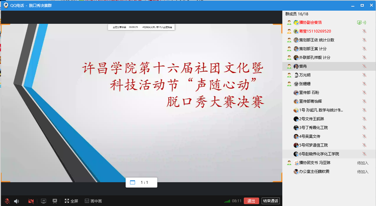4月12日,许昌学院第十六届社团文化暨科技活动节“声随心动”脱口秀大赛决赛以线上网络直播的形式开展,本次比赛由文学与传媒学院团总支和播音与主持协会承办。