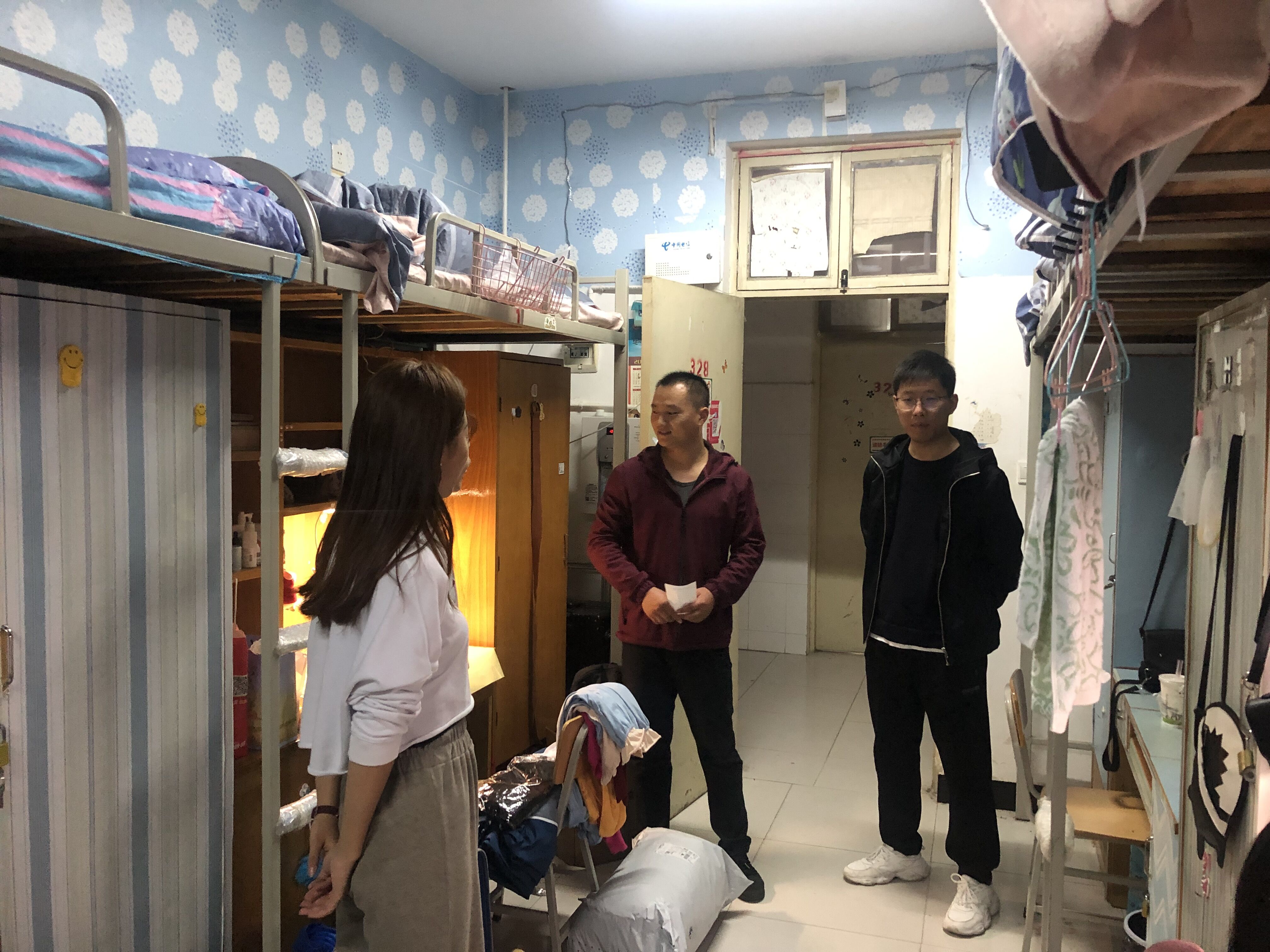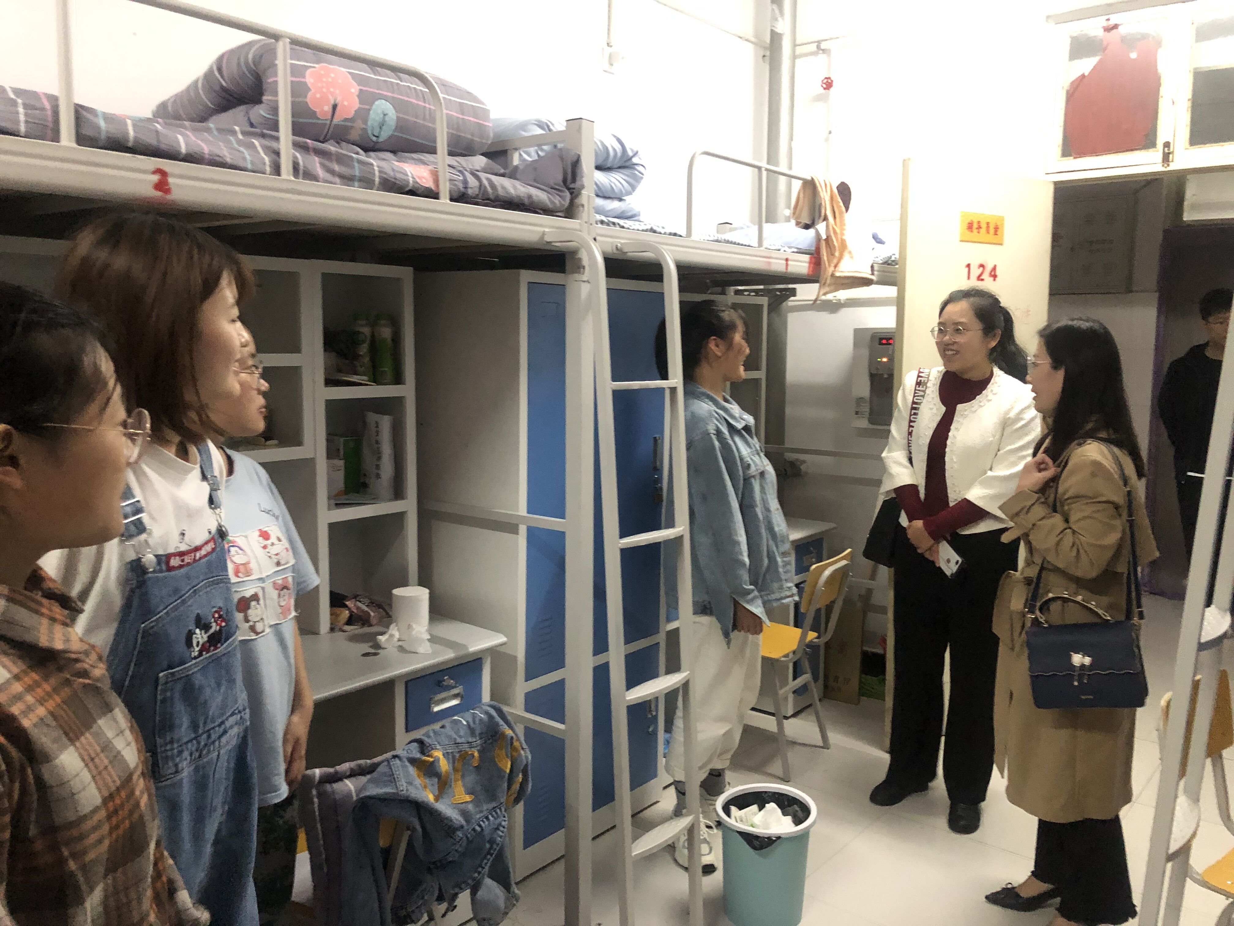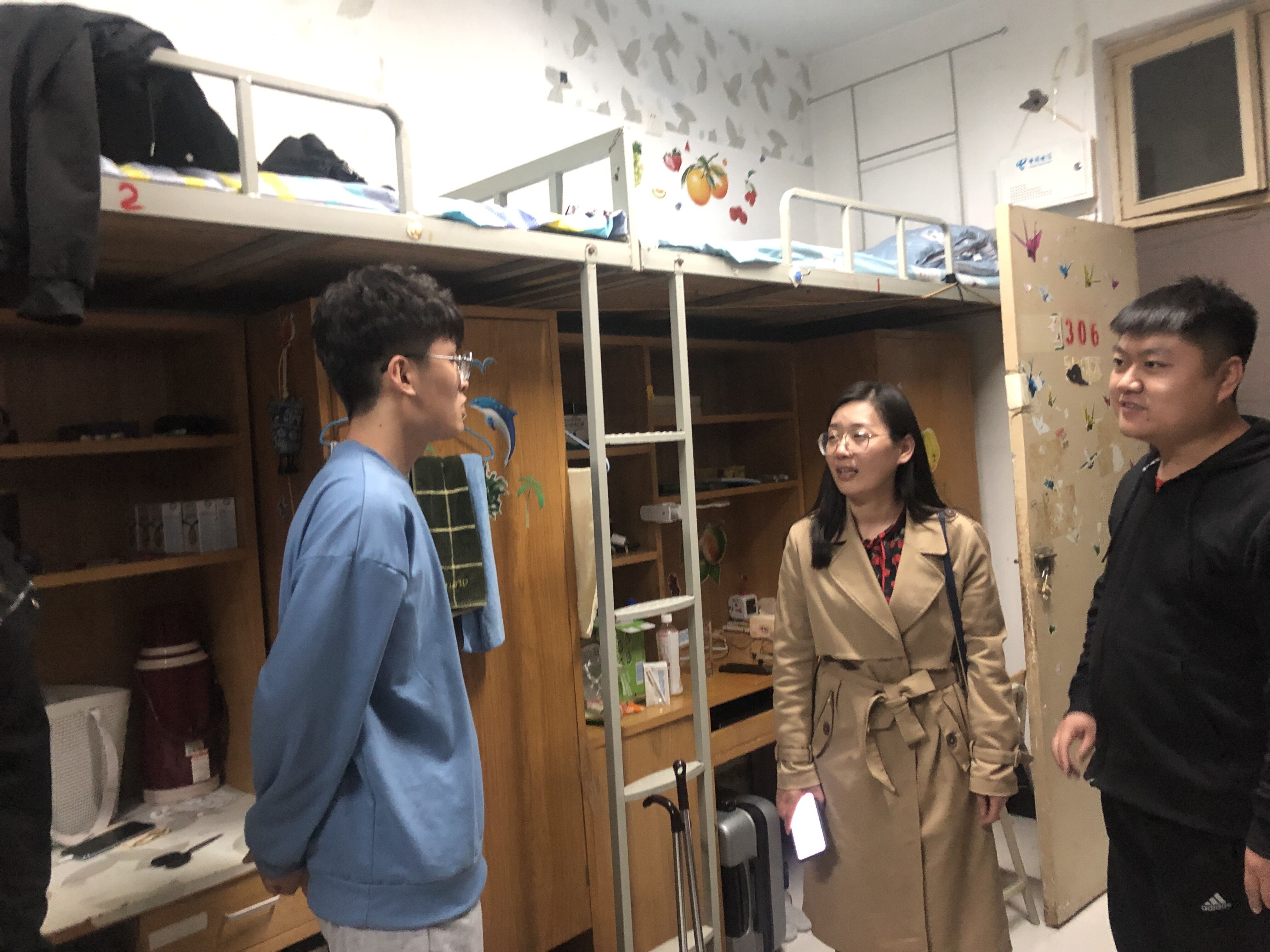 10日晚上,我院副书记马丽娜带领辅导员到宿舍看望慰问新生,鼓励同学们尽快适应和融入大学生活,在未来四年中保持积极向上的生活学习态度。