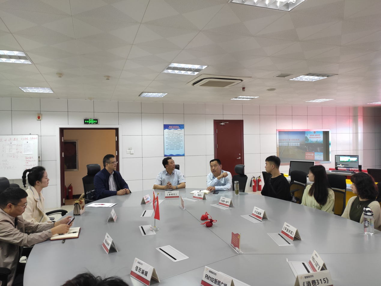 李海彬台长带领尤建设院长一行参观了许昌市广播电视台的融媒体中心、新闻指挥中心、全媒体直播电商产业基地等学生实习场所。随后双方在融媒体指挥中心举行了座谈交流会。会上,李海彬台长介绍了许昌市广播电视台近年发展的基本情况,提出了院台合作意向。他指出,许昌市广播电视台近年来向融媒体、全媒体方向转型发展迅速,走在全省前列,能够为培养高素质播音与主持艺术人才提供良好的实践平台。他还就播音与主持艺术专业人才培养方案实践教学内容提出了修改建议,希望与文史与传媒学院在实践教学方面进一步加强合作交流,共谋传媒人才的培养发展。