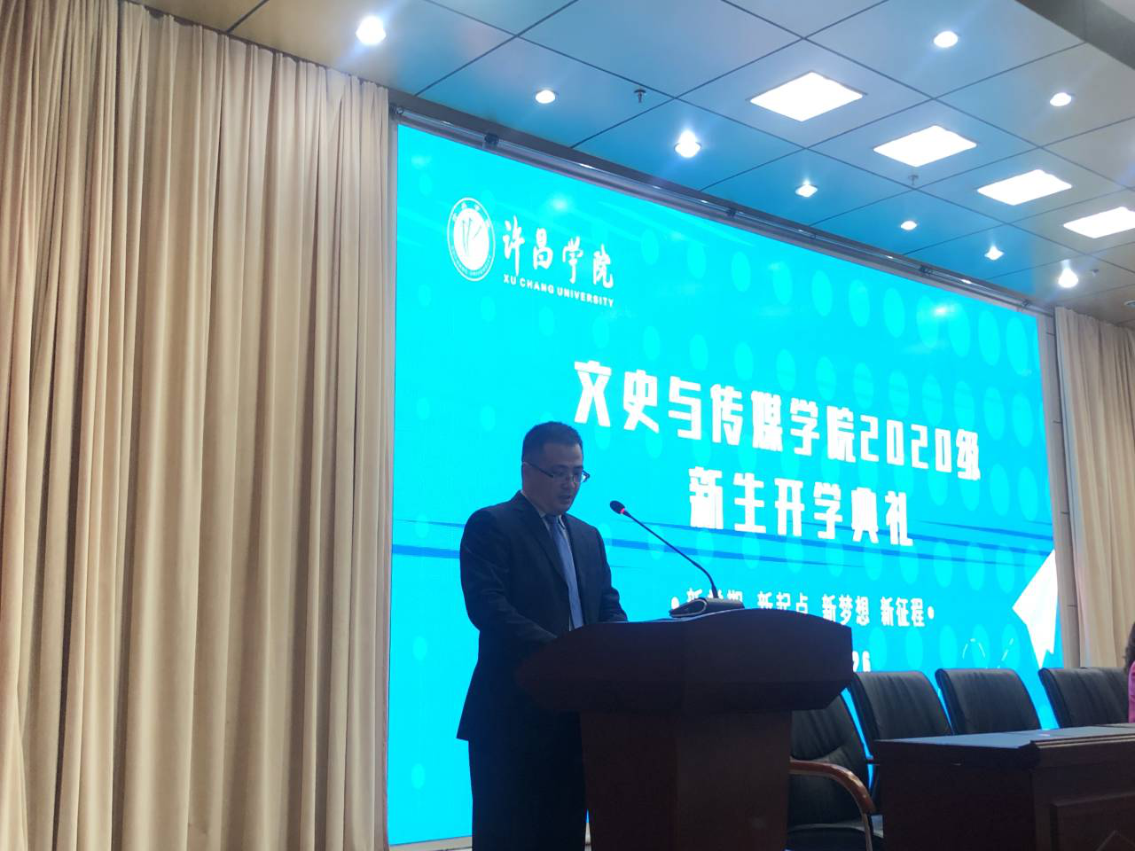 2019级学生代表吴长权向学弟学妹们分享了他的大学生活,并给予了学习上、生活上的建议,2020级新生代表李绥之代表全体新生表达了对大学生活的美好憧憬和对未来的规划目标。