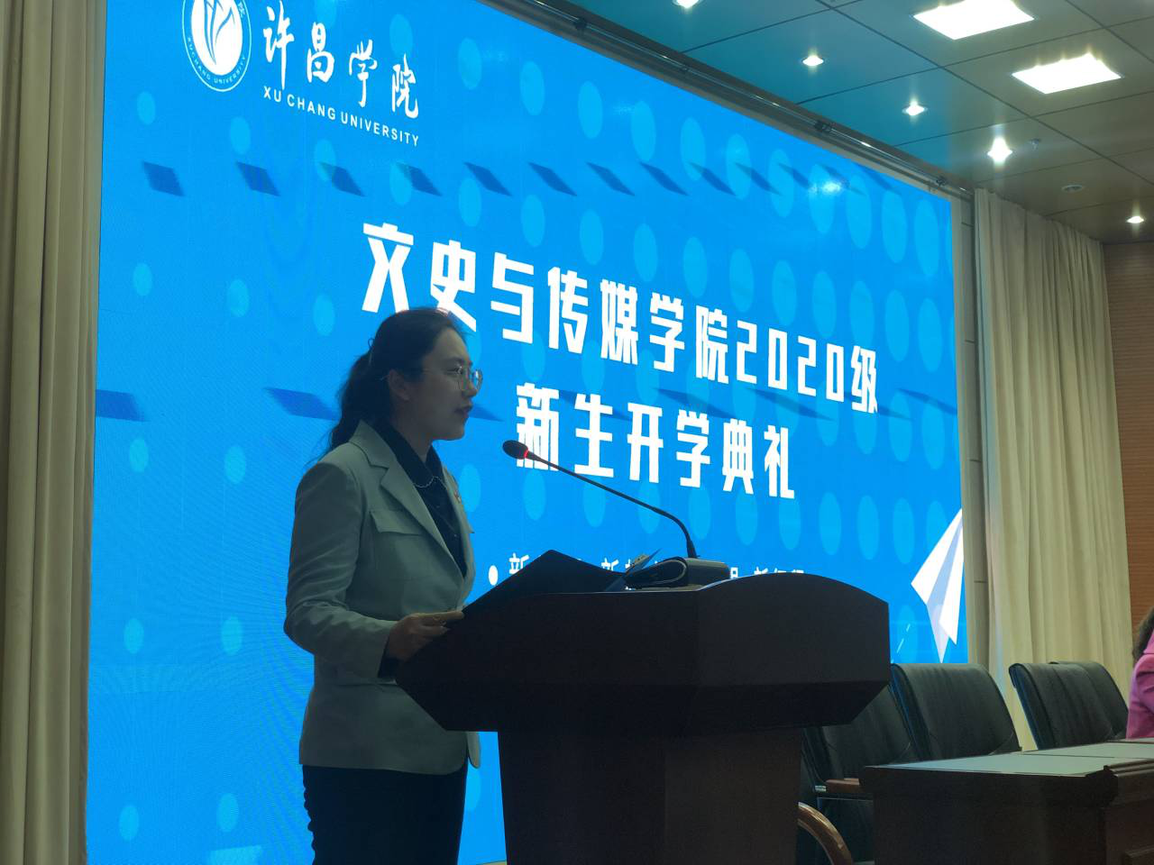 20级新生辅导员代表张姗姗老师从多个角度解读了大学生活并对新生提出“找自己”的目标要求。