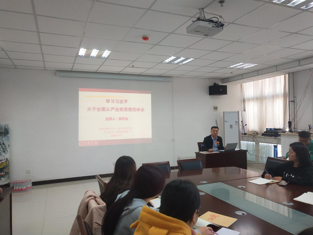 11月8日上午,我院在文综楼1417会议室举行了以“学习习近平关于全面从严治党思想的体会”为主题的分党课。本次分党课主讲人为我校党委巡察办主任、机关党委书记、马克思主义学院副教授李万仓。