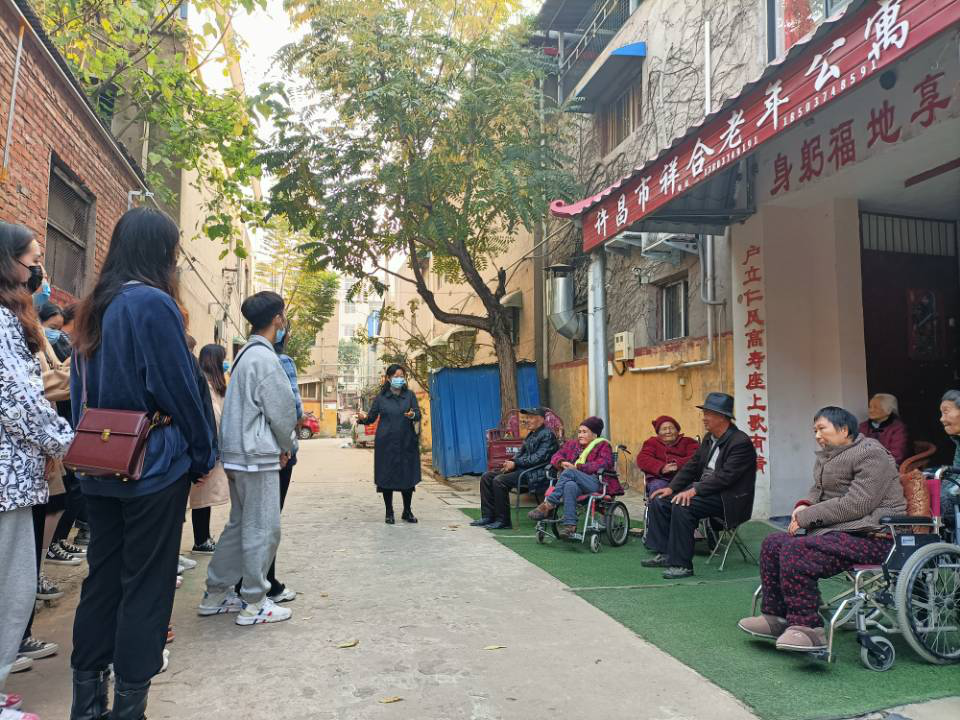 本次实践活动分为三个部分,学员们在老师的指引下分为三组,分别前往许昌市祥和老年公寓、许昌烈士陵园和校内开展实践活动。