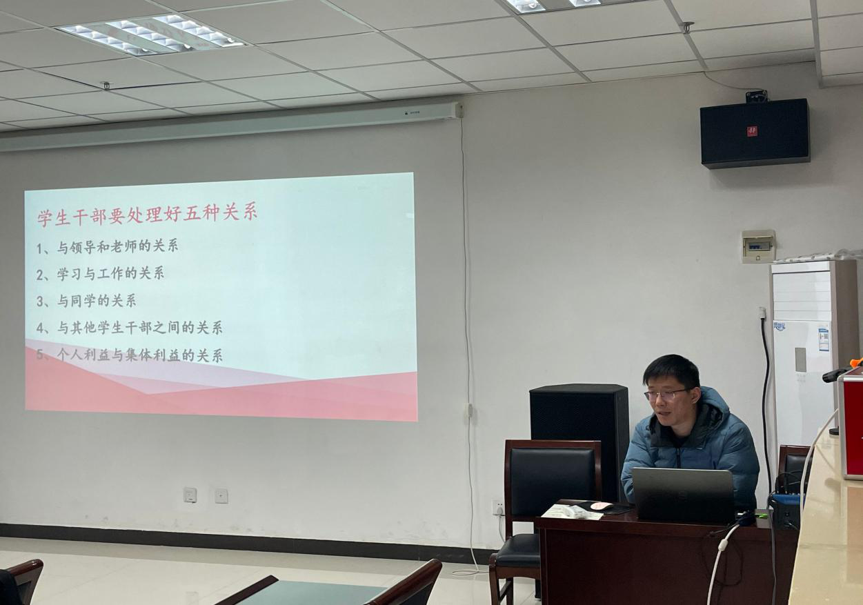 会上,訾冉老师就“如何做一名优秀的学生干部”这个问题展开讲解。訾冉老师指出,学生干部,首先必须要先做好学生的本分,把学习放在第一位,才能更好地担起学生干部的职责。学生干部要找准自己的定位,做同学的伙伴、老师的助手、朋辈的榜样,在各方面起到模范带头作用,为同学、为老师服务。