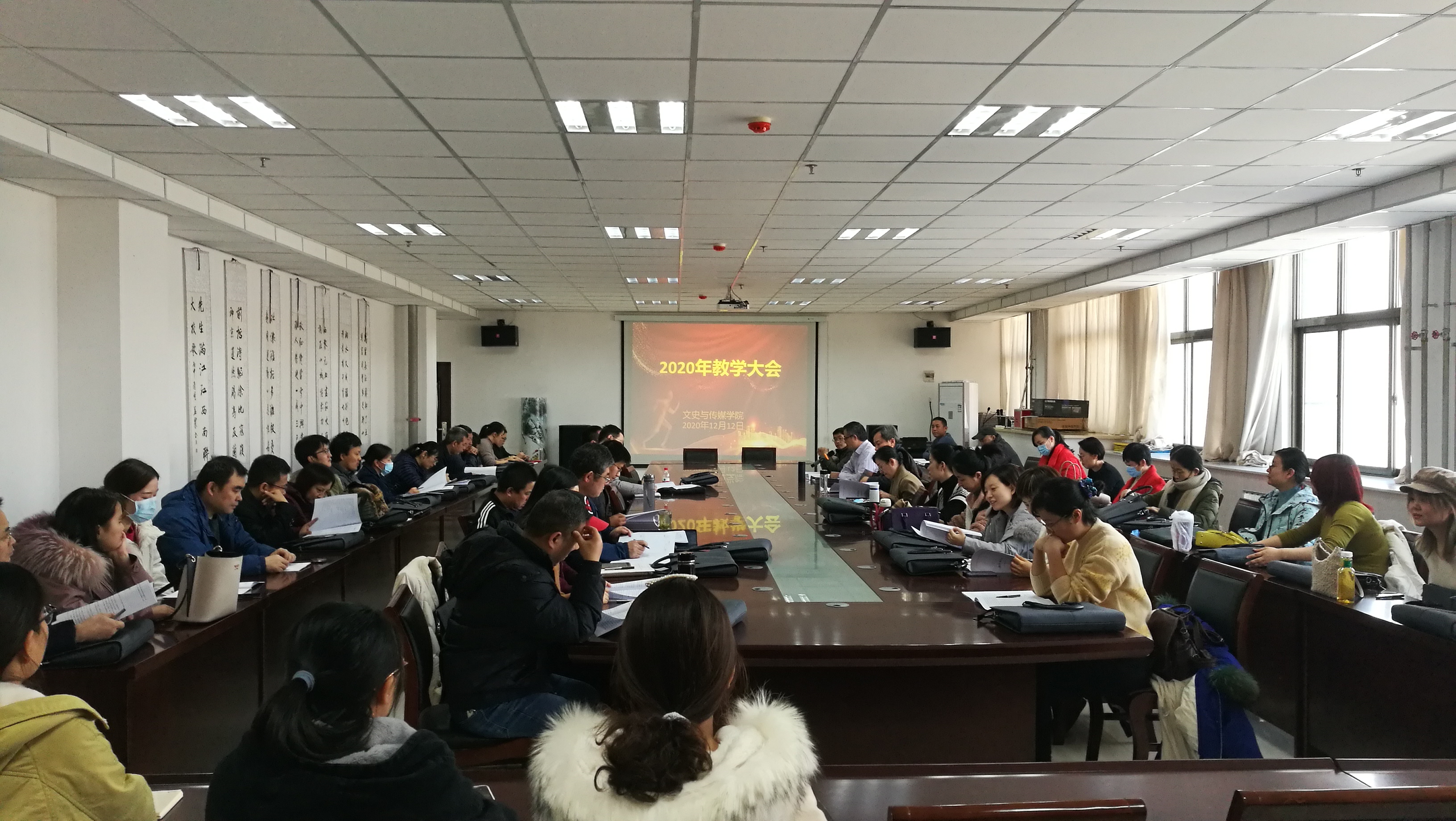 尤建设院长首先总结了2020年我院取得的教学工作成绩,过去一年,我院本科教学审核评估工作顺利完成,师范认证工作稳步推进,教师在各类教学赛事中取得优异名次,课程建设成果突出,实践教学稳步发展。同时,尤院长指出我院专业建设水平还不够高,专业发展不平衡,部分教师对教学教研不够重视。面对新的形势和挑战,尤院长明确了“十四五”期间我院在教学工作和专业建设的目标任务和工作举措,要培育出2个省级一流专业,确保汉语言文学专业、历史学专业通过师范专业二级认证,汉语国际教育专业完成师范认证前期准备,艺术类专业建成实践特色鲜明的专业。