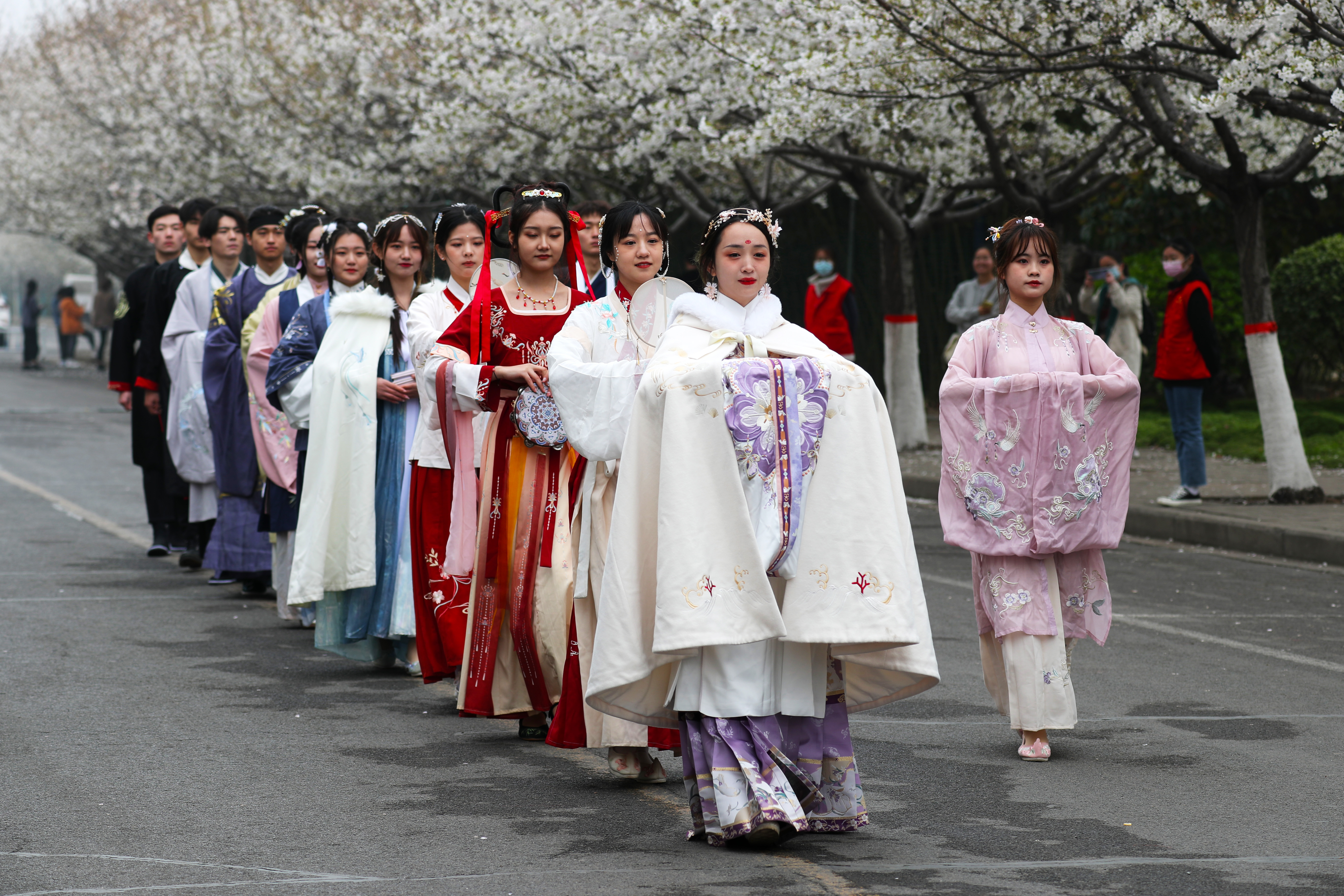 樱花盛开,不少师生纷至沓来,许院校内再现花海与人海相互辉映的盛况。樱花大道上,如云似雪的花蕊傲立枝头,树下学子如织,只为领略一番樱花的风采。我院未央汉服社、风信戏曲曲艺社在我校第四届樱花节举办多项活动,并在开幕式和活动期间以汉服走秀,戏曲表演等形式向大家展示我国传统服饰和国粹戏剧之美。因为疫情原因,活动不能对外开放,但是学校通过网络直播等形式的“云赏樱”,向社会各界全方位展现樱花绽放盛况。