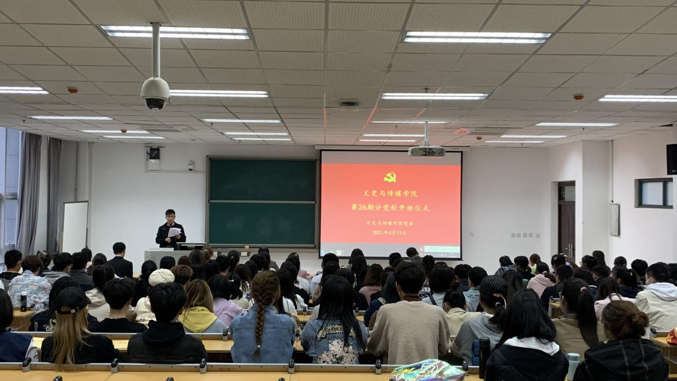 4月13日晚,我院在文综楼318教室举行第26期入党积极分子分党校培训班开班仪式。文史与传媒学院团委书记訾冉、组织员张姗姗、学生党支部书记万光明、鲍利涵以及第26期入党积极分子参加本次开班仪式。开班仪式由学生党支部书记鲍利涵主持。